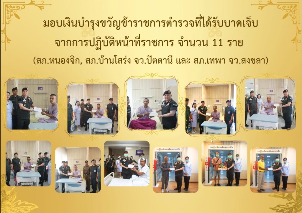 เมื่อวันที่ 27 กรกฎาคม 2567 พล.ต.อ.ต่อศักดิ์ สุขวิมล ผู้บัญชาการตำรวจแห่งชาติ (ผบ.ตร.) และ พล.ต.ท.สำราญ นวลมา ผู้ช่วย ผบ.ตร./ผบ.ศปก.ตร.สน. มอบหมายให้ พล.ต.ต.พิทักษ์ อุทัยธรรม รอง ผบช.ประจำ สง.ผบ.ตร./รอง ผบ.ศปก.ตร.สน. เดินทางไปเยี่ยมให้กำลังใจข้าราชการตำรวจที่ได้รับบาดเจ็บจากการปฏิบัติหน้าที่ราชการ จำนวน 11 ราย จากกรณีกลุ่มผู้ก่อเหตุความไม่สงบได้ลอบก่อเหตุในพื้นที่ สภ.หนองจิก,สภ.บ้านโสร่ง จ.ปัตตานี และพื้นที่ สภ.เทพา จ.สงขลา เมื่อวันที่ 22-24 กรกฎาคม 2567 ที่ผ่านมา ซึ่งตำรวจที่ได้รับบาดเจ็บทั้ง 11 ราย รักษาตัวอยู่ที่โรงพยาบาลยะลาสิริรัตนรักษ์ ต.สะเตง อ.เมือง จ.ยะลา และโรงพยาบาลสงขลานครินทร์ ต.คอหงส์ อ.หาดใหญ่ จ.สงขลา โดยมี พ.ต.อ.โยธิน โตสง่า รอง ผบก.สส.จชต.,พ.ต.อ.พัฒนชัย ปาละสุวรรณ ผกก.สภ.หนองจิก จ.ปัตตานี และคณะ ร่วมต้อนรับ