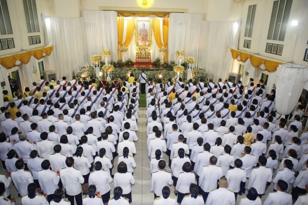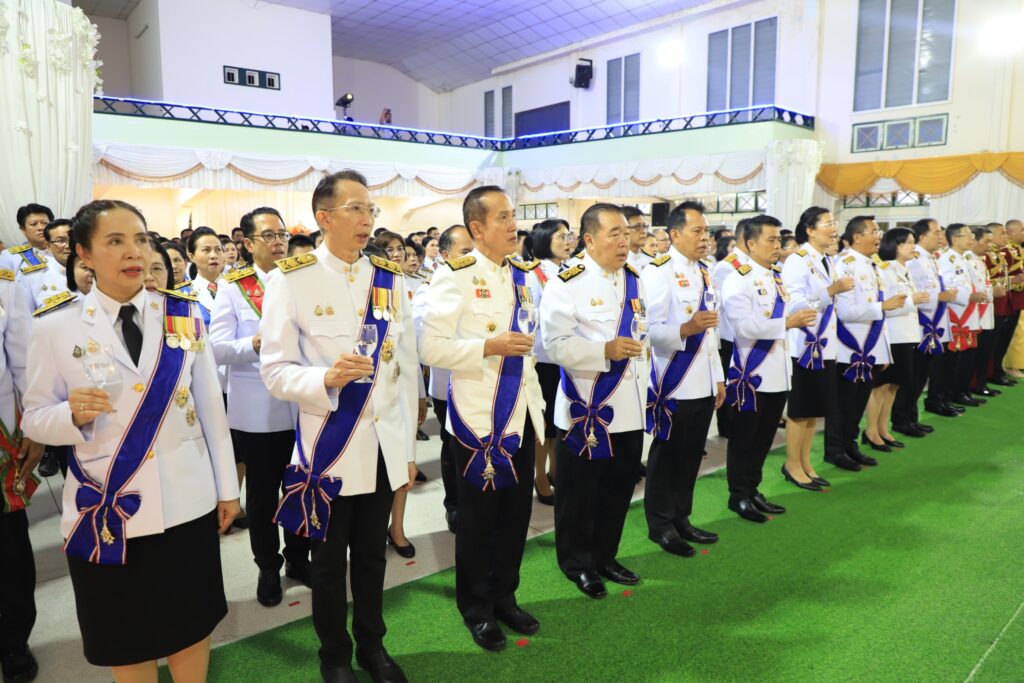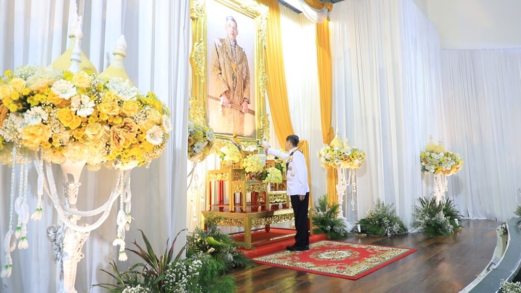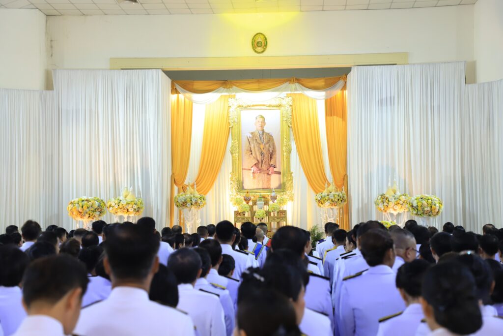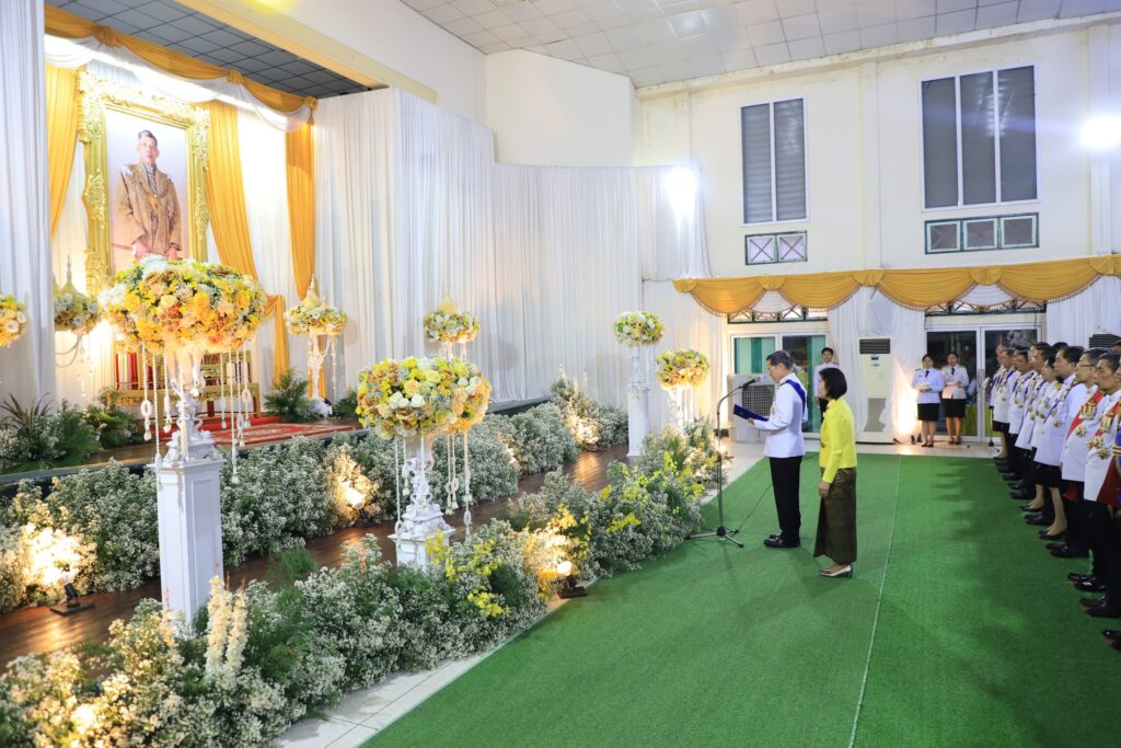 โดยประธานถวายความเคารพพระบรมฉายาลักษณ์พระบาทสมเด็จพระเจ้าอยู่หัว ถวายดอกไม้รูปเทียนแพ เบื้องหน้าพระบรมฉายาลักษณ์พระบาทสมเด็จพระเจ้าอยู่หัว แล้วถวายความเคารพ ประธานกล่าวถวายพระพรชัยมงคลเบื้องหน้าพระบรมฉายาลักษณ์พระบาทสมเด็จพระเจ้าอยู่หัวจากนั้นประธานในพิธีนำหัวหน้าส่วนราชการร้องเพลงสรรเสริญพระบารมี และเพลงสดุดีจอมราชา และรับชมดนตรีพระราชนิพนธ์ นิทรรศการเฉลิมพระเกียรติ