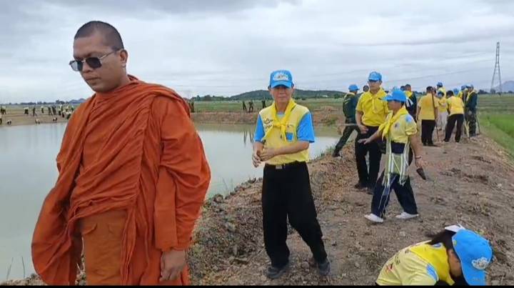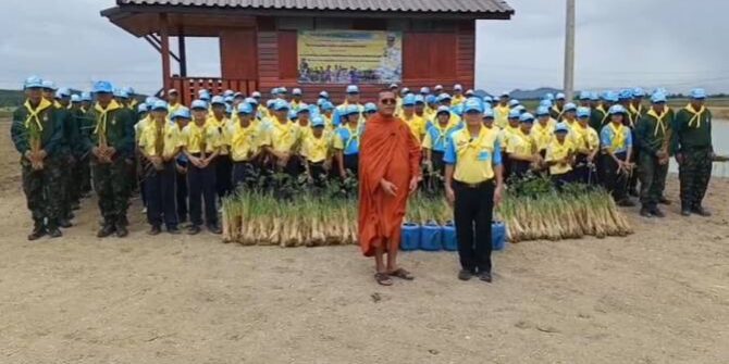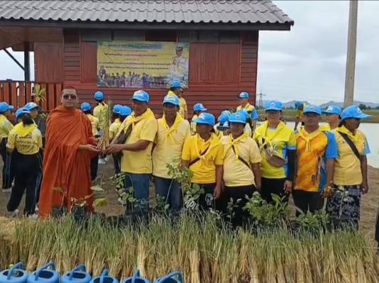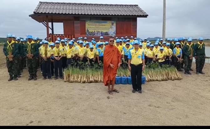 วัดถ้ำตะโกพุทธะโสภาร่วมกับโรงเรียนสุวัฒนบดีและจิตอาสาร่วมปลูกหญ้าแฝกและต้นไม้ในโครงการโค่กหนองนาพัฒนาชุมชนเฉลิมพระเกียรติ