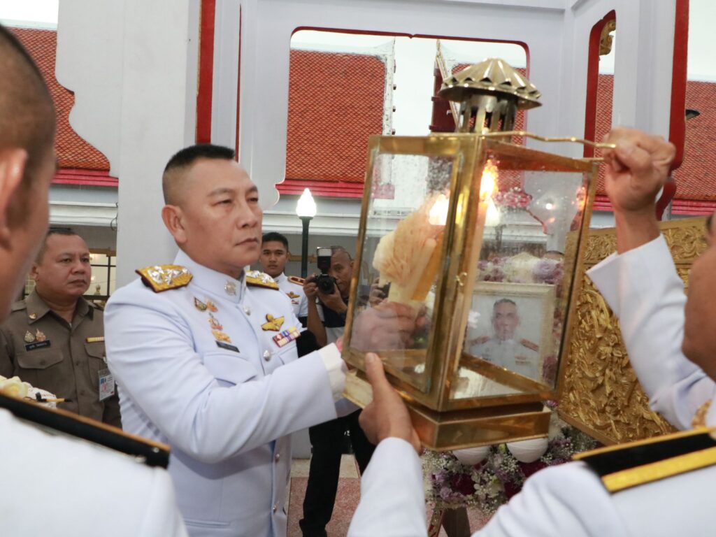 ต่อมาเวลา 17.00 น. พล.ต.อ.กิตติ์รัฐ ได้เป็นประธานในการนำดอกไม้จันทร์จุดไฟพระราชทาน แล้ววางบนจิตกาธานบริเวณฐานฟืน และเคารพศพส่งดวงวิญญาณของผู้วายชนม์เป็นครั้งสุดท้าย