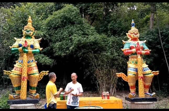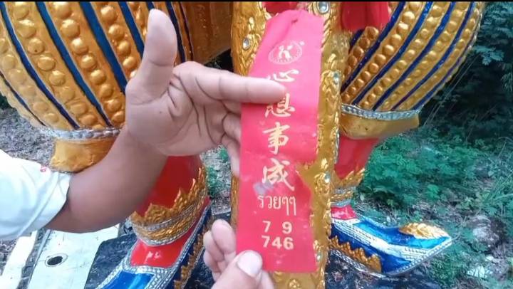 รอไปเสี่ยงดวงและได้โชคได้ลาภแล้วนำประทัดจดถวายถวายน้ำแดงให้กับปู่เทพท้าวสุวรรณที่พักสงฆ์วัดป่าจุฬามณี