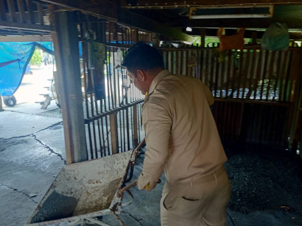ได้นำทีมงานกองช่าง อบต.หนองทรายขาว ลงพื้นที่บ้านของนางหนูจันทร์ เจียระวาปี บ้านเลขที่ 88 หมู่ที่ 5 บ้านหนองทรายขาว เพื่อทำการซ่อมแซมบ้านพักอาศัยผู้ที่มีรายได้น้อย โครงการบ้านพอเพียง จังหวัดลพบุรี “โครงการสวัสดิการชุมชน จังหวัดลพบุรี ” สภาชุมชนตำบลหนองทรายขาว