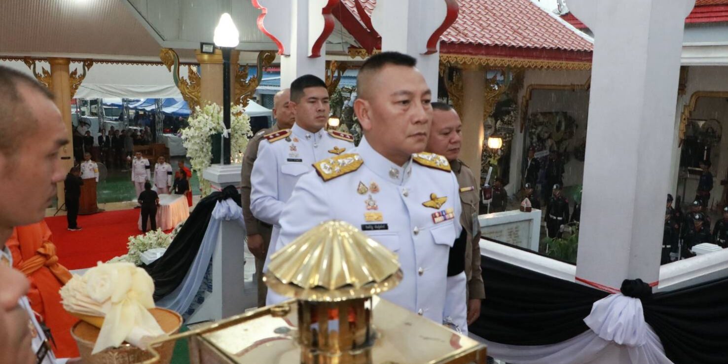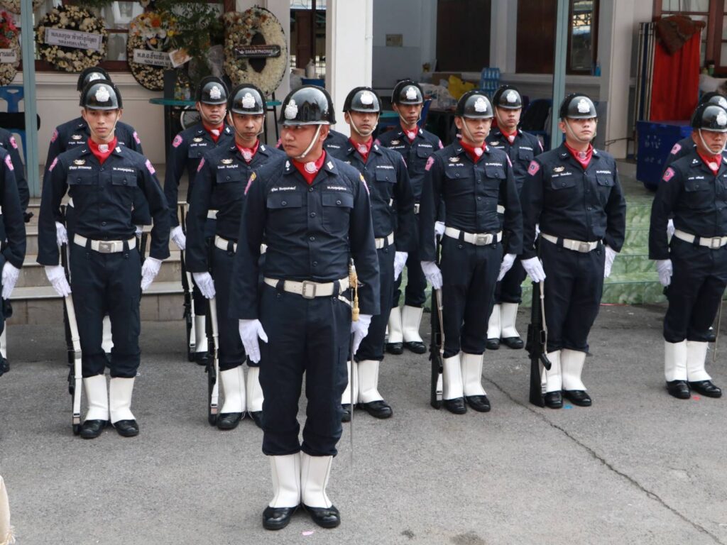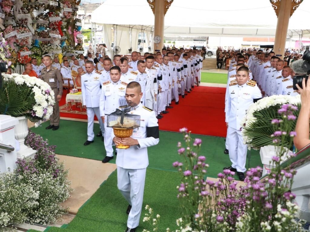 โดยมีพล.ต.อ.กิตติ์รัฐ พันธุ์เพ็ชร์ รอง ผบ.ตร.เดินทางมาเป็นประธานในพิธีฯ พร้อมด้วยพล.ต.ท.สำราญ นวลมา ผู้ช่วย ผบ.ตร.,พล.ต.ท.ธิติ แสงสว่าง ผบช.น.,พล.ต.ต.พงศ์อานันต์ คล้ายคลึง,พล.ต.ต.วสันต์ เตชะอัครเกษม,พล.ต.ต.ชรินทร์ โกพัฒน์ตา รอง ผบช.น.,พล.ต.ต.ธีรเดช ธรรมสุธีร์ ผบก.สส.บช.น.,พล.ต.ต.ประสงค์ อานมณี ผบก.น.9 และข้าราชการตำรวจในสังกัด บช.น. และบก.น.9 และเจ้าหน้าที่กระทรวงวัฒนธรรม พร้อมครอบครัวญาติคนสนิทของผู้เสียชีวิตเข้าร่วมพิธีฯ ที่จัดขึ้นอย่างสมเกียรติ