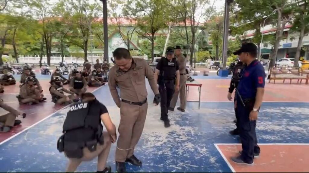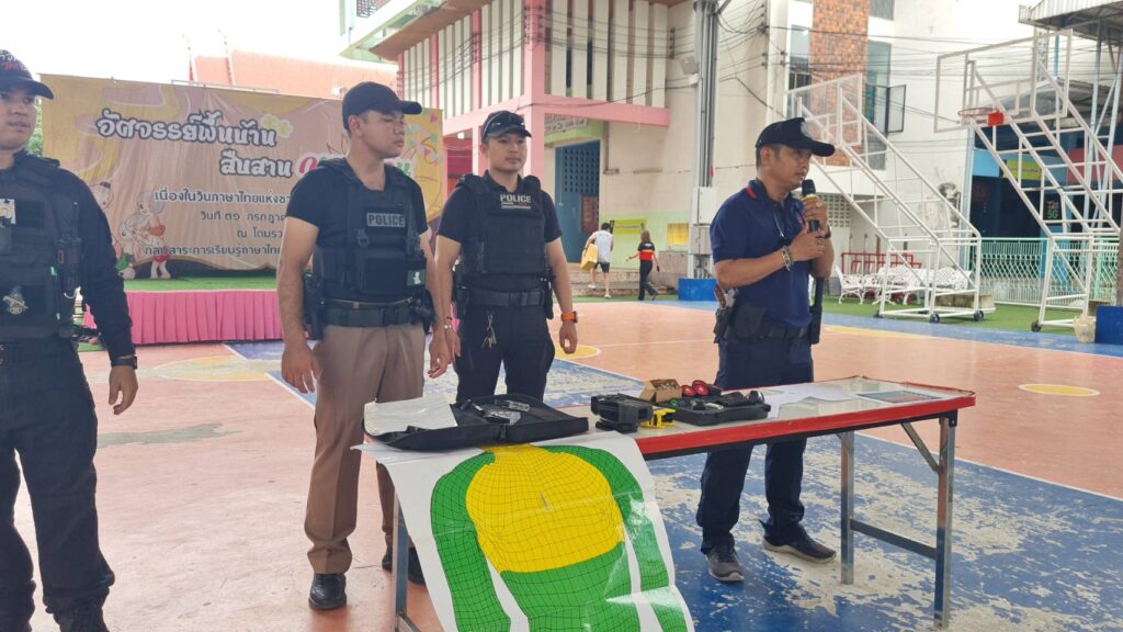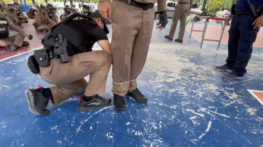 สวป.สน.บางขุนเทียน โดยมีครูฝึก (ครู ข.) พ.ต.ท.กิตติพัฎฐ์ แก้วสำอางค์ รอง ผกก.ป.ผู้ควบคุม พ.ต.ต.กฤษฎ์ นพเดชกูลจิรา สวป. จ.ส.ต.กิตตินาท สินทอง ผบ.หมู่งานป. จ.ส.ต.เรืองสิทย์ อินทสุวรรณ ผบ.หมู่ งาน.ป.จ.ส.ต.พัฒกิจ โลมาศ ผบ.หมู่ .งานป. ส.ต.อ.วุฒิภัทร จึงเจริญ ผบ.หมู่ งานป.(ครู ข) ร่วมกันฝึกทบทวนยุทธวิธีตามขั้นตอนกฎความปลอดภัยเผชิญเหตุของตำรวจ 1.อย่ารีบร้อนแสดงตัว 2.ประเมินอันตราย 3.ขอกำลังสนับสนุน 4.มีแผนในใจเสมอ 5.หลีกเลี่ยงประจัญบานตัวต่อตัว 6.หาสิ่งผิดปกติ 7.ถ้าไม่คุ้มค่าอย่าเสี่ยงดีกว่า ให้แก่เจ้าหน้าที่ตำรวจ สน.บางขุนเทียน สายงาน ป.,จร.และฝ่าย สส. โดยสมมุติเหตุการ์ณจริง ในการทบทวนยุทธวิธี ครั้งนี้ได้สาธิตนำอุปกรณ์เสริมที่เรียกว่า” Spider Rope “เครื่องยิงเชือกพันธนาการ “สามารถนำมาใช้ ในการระงับเหตุได้ ควบคู่กับปืนไฟฟ้า