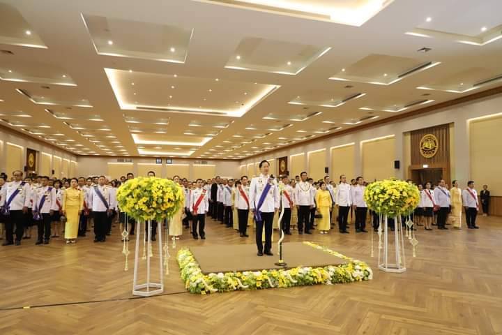 เมื่อวันที่ 29 ก.ค.67 เวลา 19.00 น. ณ อาคารโรงยิมอเนกประสงค์ (Community Hall) สนามกีฬาเทศบาลเมืองบางกะดี ตำบลบางกะดี อำเภอเมืองปทุมธานี จังหวัดปทุมธานี นายภาสกร บุญญลักษม์ ผู้ว่าราชการจังหวัดปทุมธานี เป็นประธานในงานสโมสรสันนิบาตเฉลิมพระเกียรติพระบาทสมเด็จพระเจ้าอยู่หัว เนื่องในโอกาสพระราชพิธีมหามงคลเฉลิมพระชนมพรรษา 6 รอบ 28 กรกฎาคม 2567 โดยมี นายกอบชัย ชูโต ผู้พิพากษาหัวหน้าศาลแขวงขอนแก่น ช่วยทำงานชั่วคราวในตำแหน่งผู้พิพากษาหัวหน้าศาลจังหวัดปทุมธานี นายธวัชชัย ผ่องใส อัยการจังหวัดปทุมธานี พล.ต.ต ยุทธนา จอนขุน ผู้บังคับการตำรวจภูธรจังหวัดปทุมธานี นางบุษบา บุญญลักษม์ นายกเหล่ากาชาดจังหวัดปทุมธานี นายพงศธร กาญจนะจิตรา รองผู้ว่าราชการจังหวัดปทุมธานี นางสาวธนียา นัยพินิจ รองผู้ว่าราชการจังหวัดปทุมธานี นายคมสัน ญาณวัฒนา รองผู้ว่าราชการจังหวัดปทุมธานี นายธวัชชัย อึ้งอัมพรวิไล นายกเทศมนตรีเมืองบางกะดี ตุลาการ ศาล ทหาร ตำรวจ หัวหน้าส่วนราชการ นายอำเภอ ผู้บริหารองค์กรปกครองส่วนท้องถิ่น ข้าราชการ สถาบันการศึกษา สมาชิกเหล่ากาชาดจังหวัดปทุมธานีและประชาชน ใน จ.ปทุมธานี เข้าร่วมพิธี ในการนี้ ผู้ว่าราชการจังหวัดปทุมธานี ได้ทำพิธีเปิดกรวยกระทงดอกไม้ถวายธูปเทียนแพ และกราบบังคมทูลถวายพระพรชัยมงคล เบื้องหน้าพระบรมฉายาลักษณ์พระบาทสมเด็จพระเจ้าอยู่หัว จากนั้นนำผู้ร่วมพิธีร่วมร้องเพลงสรรเสริญพระบารมี และเพลงสดุดีจอมราชา และกล่าวนำทรงพระเจริญ 3 ครั้ง และร่วมชมการแสดงศิลปวัฒนธรรมเฉลิมพระเกียรติ ชุดใต้ร่มพระบารมี ถวายสดุดีจอมราชัน จากโรงเรียนปทุมวิไล และชุด แผ่นดินของเราชาวปทุมธานี จากโรงเรียนเทศบาลเมืองบางกะดี ทั้งนี้ กระทรวงมหาดไทย ได้ขอพระราชทานพระบรมราชานุญาต ให้ทุกจังหวัดดำเนินการจัดงานสโมสรสันนิบาตเฉลิมพระเกียรติพระบาทสมเด็จพระเจ้าอยู่หัวเนื่องในโอกาสพระราชพิธีมหามงคลเฉลิมพระชนมพรรษา 6 รอบ 28 กรกฎาคม 2567 พร้อมกับส่วนกลาง ในวันที่ 29 กรกฎาคม 2567 เพื่อร่วมแสดงความจงรักภักดีและสำนึกในพระมหากรุณาธิคุณของพระบาทสมเด็จพระเจ้าอยู่หัว โดยสำนักพระราชวังได้นำความกราบบังคมทูลพระกรุณาทรงทราบฝ่าละอองธุลีพระบาทแล้ว พระราชทานพระบรมราชานุญาตตามที่ขอพระมหากรุณา ยังความปลาบปลื้มแก่พสกนิกรทุกหมู่เหล่าของจังหวัดปทุมธานีเป็นล้นพ้น