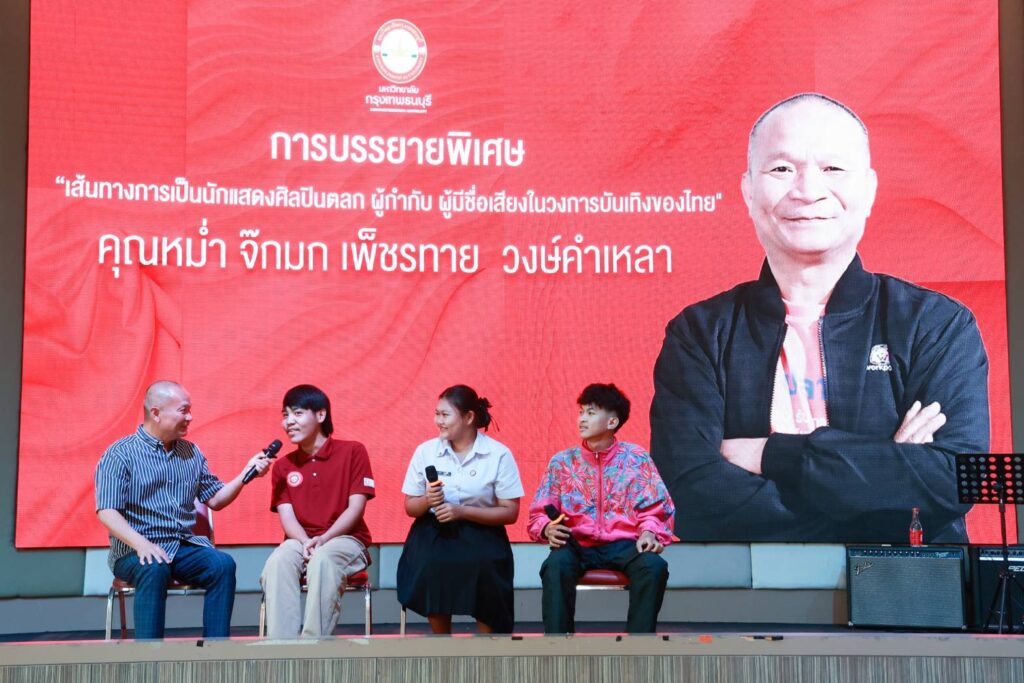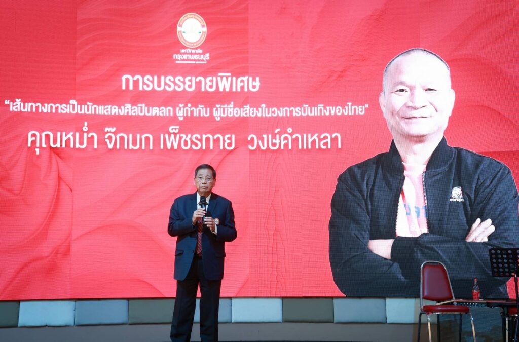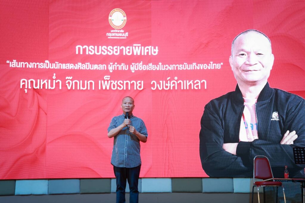 จากความสำคัญดังกล่าว คณะนิเทศศาสตร์ มหาวิทยาลัยกรุงเทพธนบุรี จึงได้จัดกิจกรรมการบรรยายพิเศษ เรื่อง “เส้นทางการเป็นนักแสดงศิลปินตลก ผู้กำกับ ผู้มีชื่อเสียงในวงการบันเทิงของไทย” โดยมี รศ.ดร.ปัญญา รุ่งเรือง รองอธิการบดีฝ่ายวิชาการให้เกียรติเป็นประธานเปิดการบรรยายพิเศษดังกล่าวให้กับนักศึกษาไทย และนักศึกษาต่างชาติคณะต่าง ๆ ของมหาวิทยาลัยกรุงเทพธนบุรี และสถาบันในเครือ โดยได้รับเกียรติจาก “หม่ำ จ๊กมก” เพ็ชรทาย วงษ์คำเหลา นักแสดง ศิลปินตลก และผู้กำกับที่มีชื่อเสียงในแวดวงบันเทิงของประเทศไทยมาเป็นวิทยากรกิตติมศักดิ์บรรยายในหัวข้อดังกล่าว