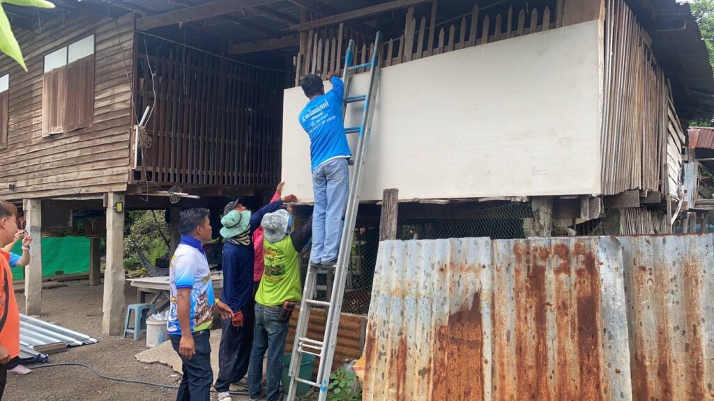 ได้นำทีมงานกองช่าง อบต.หนองทรายขาว ลงพื้นที่บ้านของนางหนูจันทร์ เจียระวาปี บ้านเลขที่ 88 หมู่ที่ 5 บ้านหนองทรายขาว และบ้านของนายบุญส่ง ช่างทอง บ้านเลขที่ 25 หมู่ที่ 3 บ้านสระเตยน้อย เพื่อทำการซ่อมแซมบ้านพักอาศัยผู้ที่มีรายได้น้อย โครงการบ้านพอเพียง จังหวัดลพบุรี “โครงการสวัสดิการชุมชน จังหวัดลพบุรี ” สภาชุมชนตำบลหนองทรายขาว
