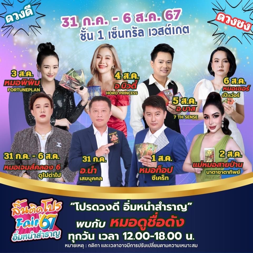 ภายในงานยังได้ร่วมสนุกกับกิจกรรมพิเศษ กับโปรดีๆ กินฟรี มีแถม!! อิ่มอร่อย, “โปรดวงดี อิ่มหนำสำราญ” กับ หมอดูชื่อดัง สลับสับเปลี่ยนกันมา เช็คดวงกันให้ปัง!!ไปจนถึงสิ้นปี 67