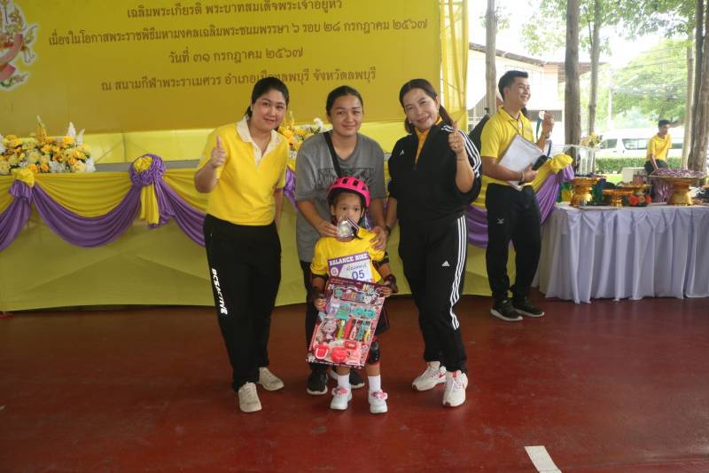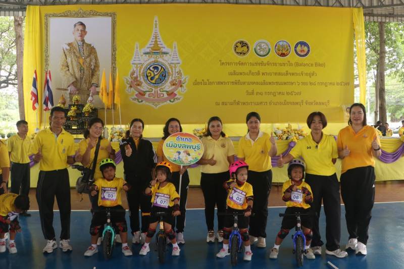 เมื่อวันที่ ๓๑ กรกฎาคม ๒๕๖๗ ว่าที่ร้อยตรี ทรงพล แป้นแก้ว รองผู้ว่าราชการจังหวัดลพบุรี เป็นประธานเปิดการแข่งขันจักรยานขาไถ (Balance Bike) เฉลิมพระเกียรติ พระบาทสมเด็จพระเจ้าอยู่หัว เนื่องในโอกาสพระราชพิธีมหามงคลเฉลิมพระชนมพรรษา ๖ รอบ ๒๘ กรกฎาคม ๒๕๖๗ โดยมีวัตถุประสงค์เพื่อส่งเสริมสนับสนุนให้เด็กปฐมวัยได้ออกกำลังกาย เพื่อพัฒนาการที่สูงวัยรอบด้าน สุขภาพสมบูรณ์แข็งแรง และใช้เวลาว่างให้เกิดประโยชน์ ณ บริเวณโดมสนามฟุตซอล สนามกีฬาพระราเมศวร อ.เมืองลพบุรี จ.ลพบุรี โดย นายจำเริญ สละชีพ นายกเทศมนตรีเมืองลพบุรี มอบให้ นางสาวมยุรา สุทธิพิบูลย์ รก.ปลัดเทศบาลเมืองลพบุรี เข้าร่วมในพิธี