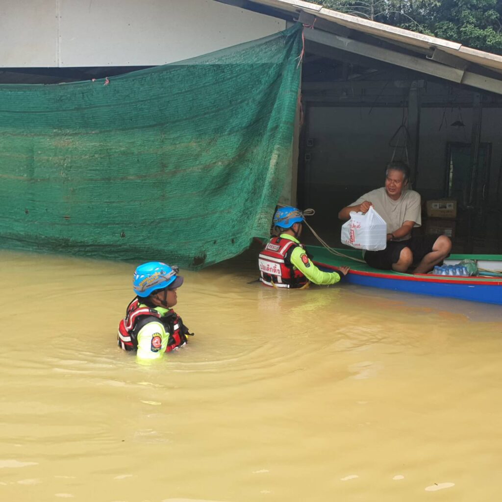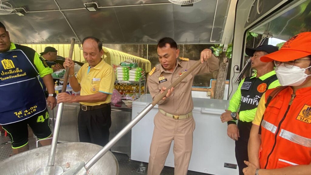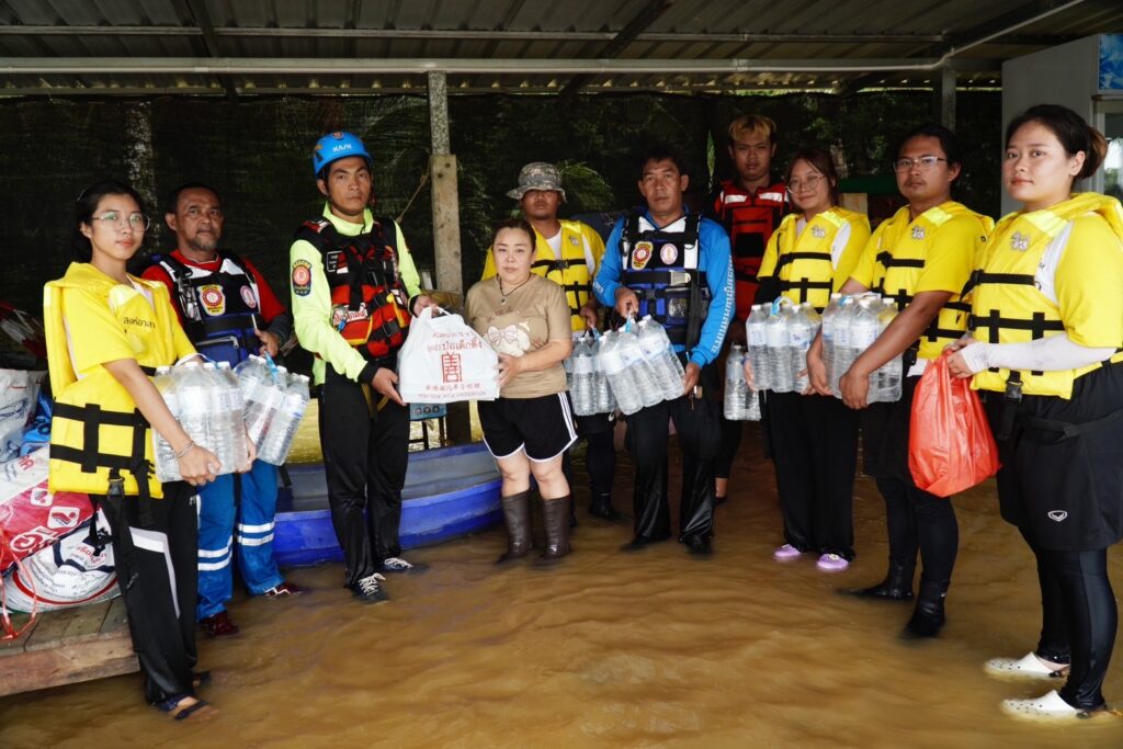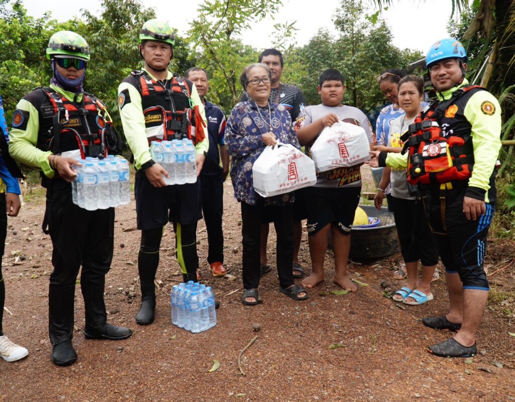 โดยวานนี้ (วันพุธที่ 31 กรกฎาคม พ.ศ.2567) ทีมบรรเทาสาธารณภัยมูลนิธิป่อเต็กตึ๊ง ได้ประกอบอาหารปรุงสุกบรรจุกล่อง พร้อมน้ำดื่ม ถุงยังชีพ ชุดยาสามัญประจำบ้าน บรรทุกเรือท้องแบน กระจายลงพื้นที่ ออกแจกจ่ายแก่ผู้ประสบภัยบริเวณพื้นที่หมู่บ้านห้วยแร้ง หมู่บ้านบางปรง หมู่บ้านลำภูราย หมู่บ้านท่าประดู่ หมู่บ้านมุมสงบ ตำบลเขาสมิง อำเภอเขาสมิง และอำเภอเมือง รวมถึงนำจัดทีมกู้ชีพ กู้ภัย พร้อมยานพาหนะ รถพยาบาลฉุกเฉินขับเคลื่อน 4 ล้อ ลงพื้นที่ให้ความช่วยเหลือตรวจร่างกายเบื้องต้นแก่ผู้สูงอายุ และผู้ป่วยในพื้นที่ประสบภัย รวมถึงเคลื่อนย้ายผู้ป่วยไปยังโรงพยาบาล โดยมีทีมหน่วยกู้ภัย สมาคมตราดพุทธสงเคราะห์ – พ่งไล้หลักเซียวเกาะ จังหวัดตราด และหน่วยกู้ภัยฉะเชิงเทรา ร่วมปฏิบัติภารกิจในครั้งนี้ โดยเมื่อช่วงบ่ายของวันเดียวกัน นายพีระ เอี่ยมสุนทร รองผู้ว่าราชการจังหวัดตราด พร้อมด้วย พ.ต.อ.นิพล คงเกียรติก้อง ผู้กำกับ สภ.เมือง ตราด ผู้แทนกรมป้องกันและบรรเทาสาธารณภัย จังหวัดตราด และส่วนราชการ เข้าตรวจเยี่ยมและชมแผนการปฏิบัติการ พร้อมให้กำลังใจทีมบรรเทาสาธารณภัยมูลนิธิป่อเต็กตึ๊ง
