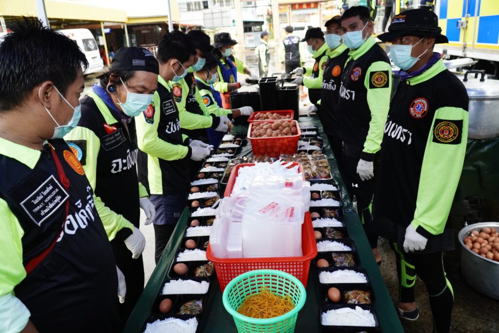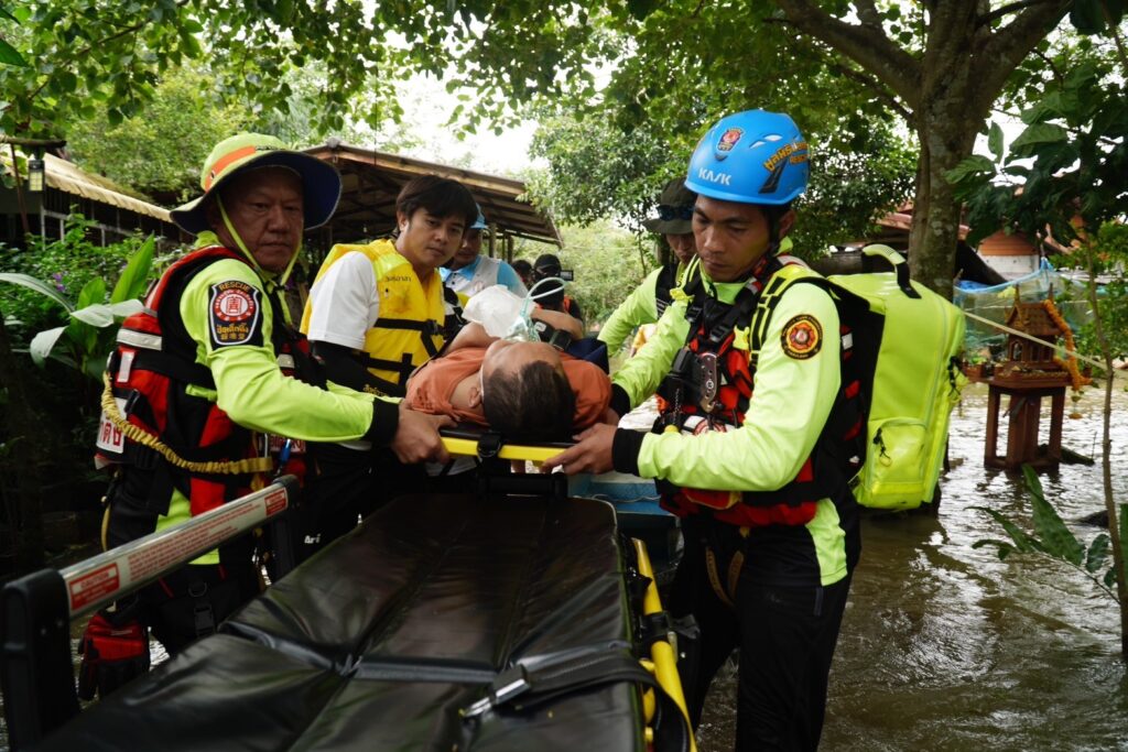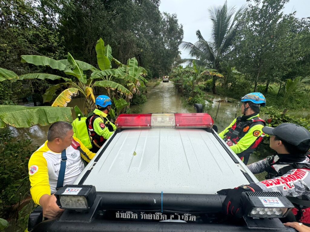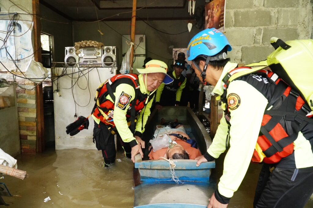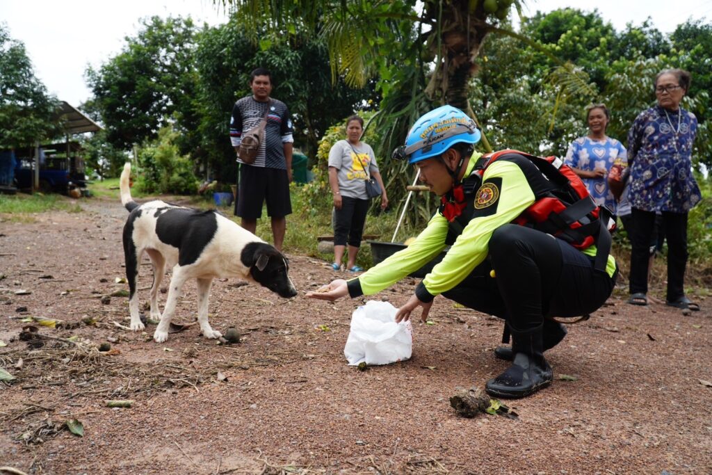 โดยวานนี้ (วันพุธที่ 31 กรกฎาคม พ.ศ.2567) ทีมบรรเทาสาธารณภัยมูลนิธิป่อเต็กตึ๊ง ได้ประกอบอาหารปรุงสุกบรรจุกล่อง พร้อมน้ำดื่ม ถุงยังชีพ ชุดยาสามัญประจำบ้าน บรรทุกเรือท้องแบน กระจายลงพื้นที่ ออกแจกจ่ายแก่ผู้ประสบภัยบริเวณพื้นที่หมู่บ้านห้วยแร้ง หมู่บ้านบางปรง หมู่บ้านลำภูราย หมู่บ้านท่าประดู่ หมู่บ้านมุมสงบ ตำบลเขาสมิง อำเภอเขาสมิง และอำเภอเมือง รวมถึงนำจัดทีมกู้ชีพ กู้ภัย พร้อมยานพาหนะ รถพยาบาลฉุกเฉินขับเคลื่อน 4 ล้อ ลงพื้นที่ให้ความช่วยเหลือตรวจร่างกายเบื้องต้นแก่ผู้สูงอายุ และผู้ป่วยในพื้นที่ประสบภัย รวมถึงเคลื่อนย้ายผู้ป่วยไปยังโรงพยาบาล โดยมีทีมหน่วยกู้ภัย สมาคมตราดพุทธสงเคราะห์ – พ่งไล้หลักเซียวเกาะ จังหวัดตราด และหน่วยกู้ภัยฉะเชิงเทรา ร่วมปฏิบัติภารกิจในครั้งนี้ โดยเมื่อช่วงบ่ายของวันเดียวกัน นายพีระ เอี่ยมสุนทร รองผู้ว่าราชการจังหวัดตราด พร้อมด้วย พ.ต.อ.นิพล คงเกียรติก้อง ผู้กำกับ สภ.เมือง ตราด ผู้แทนกรมป้องกันและบรรเทาสาธารณภัย จังหวัดตราด และส่วนราชการ เข้าตรวจเยี่ยมและชมแผนการปฏิบัติการ พร้อมให้กำลังใจทีมบรรเทาสาธารณภัยมูลนิธิป่อเต็กตึ๊ง