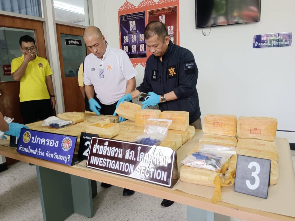 “โดยการตรวจยึดในครั้งนี้ สืบเนื่องมาจากเจ้าหน้าที่ได้รับแจ้งจากอำเภอโคกสำโรง ว่าเกิดอุบัติเหตุรถรับส่งคนงานชนเข้ากับเสาไฟฟ้าริมทางบริเวณ ม.3 ตำบลวังขอนขวาง อ.โคกสำโรง จ.ลพบุรี ที่ทำการปกครองจังหวัดลพบุรี (กลุ่มงานความมั่นคง) นำโดยนายยศวิน บำรุงเวช ป้องกันจังหวัดลพบุรี จึงประสานงานร่วมกับทางสถานีตำรวจโคกสำโรง ส่งพนักงานสืบสวนสอบสวนลงพื้นที่ เพื่อตรวจสอบเหตุการณ์ดังกล่าว หลังจากตรวจสอบในพื้นที่เกิดเหตุ พบว่าไม่ห่างจากจุดเกิดเหตุพบถุงกระสอบปุ๋ยต้องสงสัยจำนวน 2 ถุง และในถุงดำอีก 1 ถุง จึงได้ทำการตรวจค้นโดยละเอียด พบยาเสพติดจำนวนมากอยู่บรรจุงห่ออีกชั้นในถุงกระสอบปุ๋ยทั้ง 3 ถุง โดยจากการประมาณการยาเสพติดทั้ง 3 กระสอบมีจำนวน 500,000 เม็ด เจ้าหน้าที่จึงได้ดำเนินการตรวจยึดและส่งพิสูจน์หลักฐานเพื่อดำเนินการขยายผลการจับกุมต่อไป นายอำพล กล่าว
