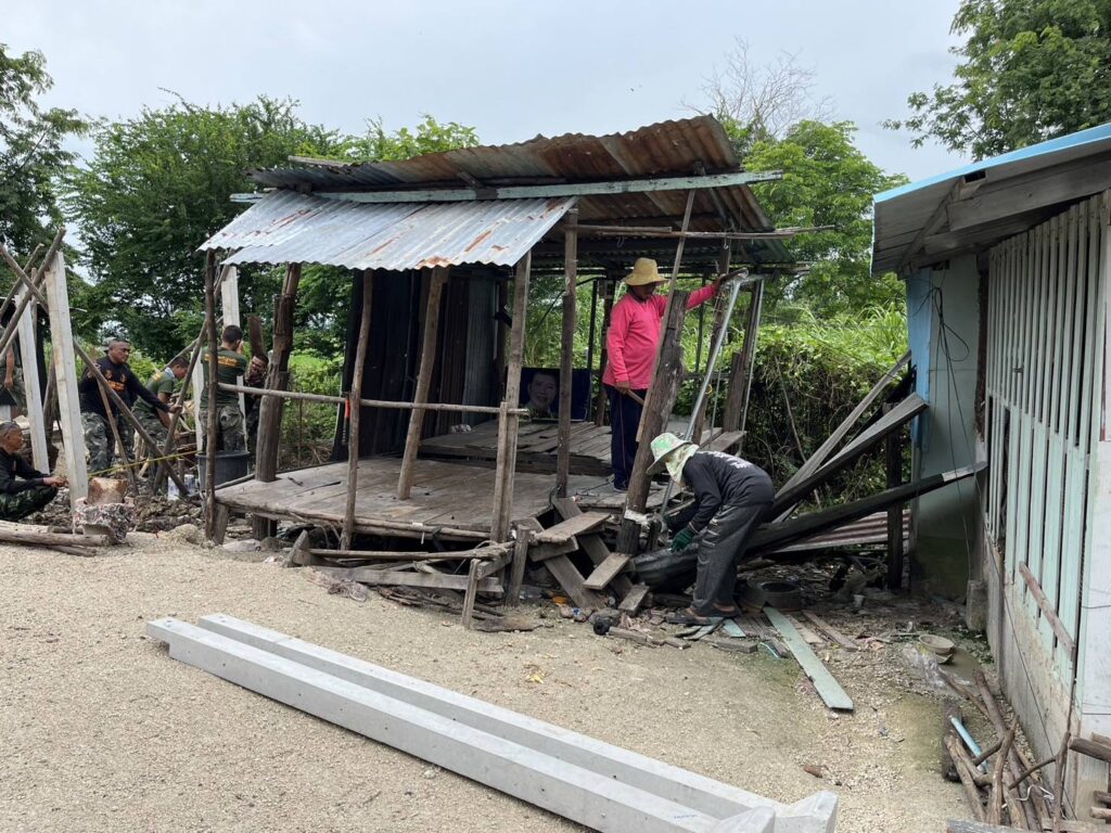 ได้นำทีมงานกองช่าง อบต. หนองทรายขาว ลงพื้นที่บ้านของนางกฐิน มงคล บ้านเลขที่ 138/1 หมู่ที่ 6 บ้านเนินยาว ต.หนองทรายขาว เพื่อทำการซ่อมแซมบ้านพักอาศัยผู้ที่มีรายได้น้อย และขาดการดูแลช่วยเหลือจากส่วนราชการที่เกี่ยวข้องมาเป็นเวลานานและได้รับความเดือดร้อน ใน ปีงบประมาณ 67 ได้รับงบประมาณซ่อมแซม โครงการบ้านพอเพียง จังหวัดลพบุรี “โครงการสวัสดิการชุมชน จังหวัดลพบุรี ” สภาชุมชนตำบลหนองทรายขาว พร้อมด้วยกำลังพลสังกัดพันธุ์ป้องกันฐานบินทหารบก ศูนย์การบินทหารบก ลงพื้นที่ซ่อมแซมด้วย