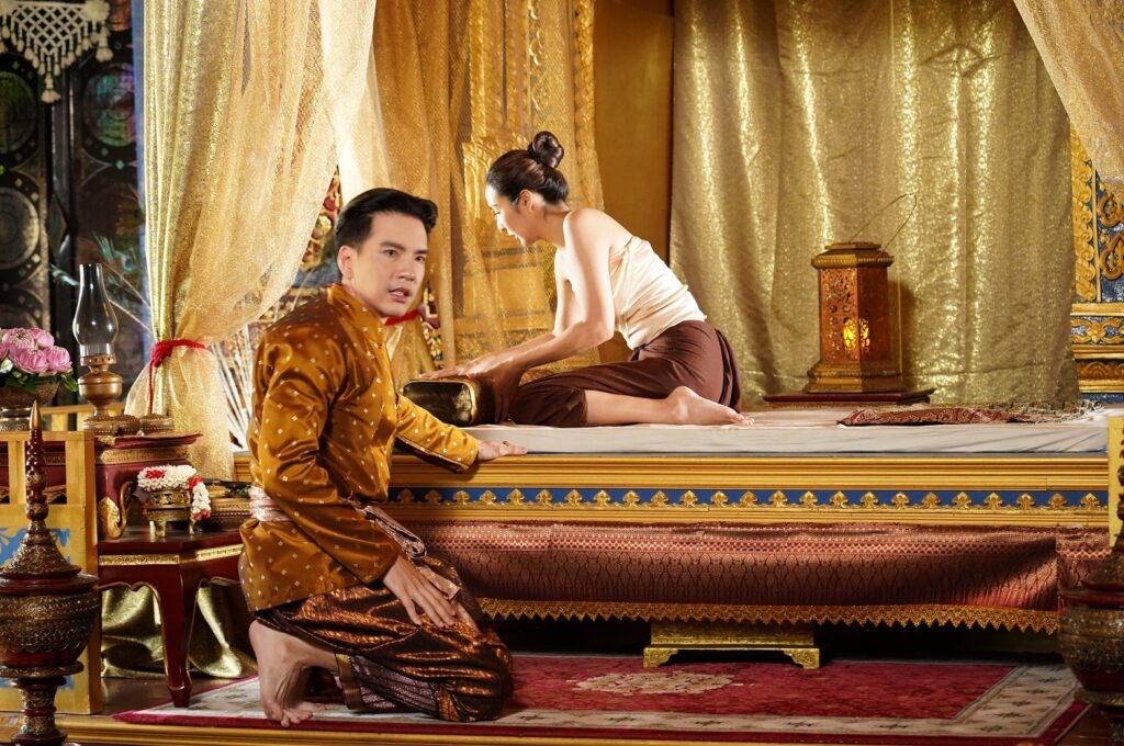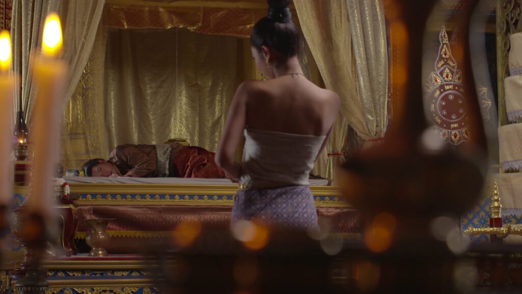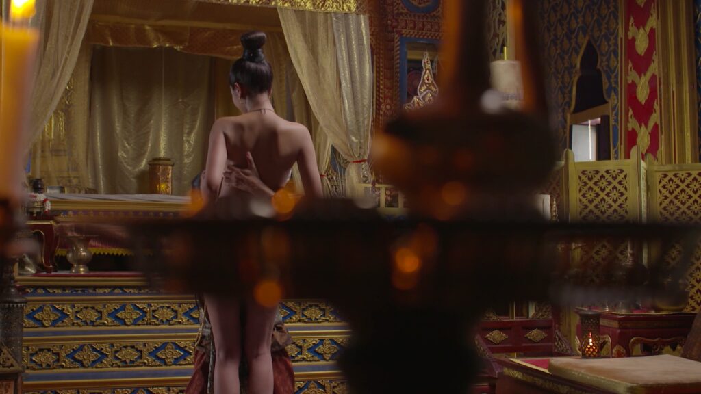เป็นฉากที่ บัว(ชิปปี้) ออกจันทร์(นิว)บุกห้องบรรทมของวังหน้า เพราะ บัวเชื่อว่า สนมจวง(น้ำหวาน)เล่นของใส่ วังหน้า(โอ) เพราะวังหน้ามีท่าทีที่เปลี่ยนไปเหมือนคนละคน ทั้งคู่พากันมาหาหลักฐาน แต่ในขณะที่ กำลังหาหลักฐานอยู่ วังหน้า และ สนมจวงก็เสด็จกลับมาพอดี ทำให้ บัวและออกจันทร์ ต้องรีบไปหลบหลังแท่นบรรทม ในขณะเดียวกันก็ต้องคิดแผนเพื่อที่จะหนีออกจากห้องบรรทมไปให้ได้อย่างปลอดภัย