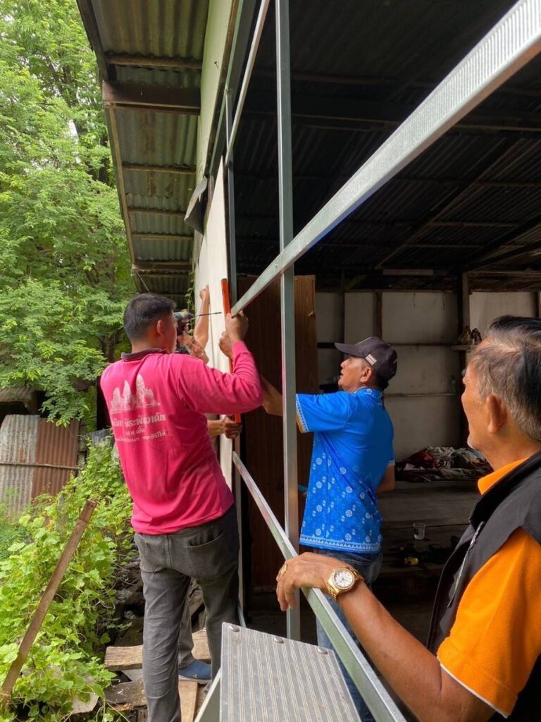 ได้นำทีมงานกองช่าง อบต. หนองทรายขาว และชาวบ้านมะขามเฒ่า ทีมช่างชุดที่ 3 บ้านของนายนพดล มะลิวัลย์ บ้านเลขที่ 11 หมู่ที่ 1 บ้านมะขามเฒ่า (หลังที่ 5 ซ่อมแซมเสร็จเรียบร้อย) เพื่อทำการซ่อมแซมบ้านพักอาศัยผู้ที่มีรายได้น้อย และขาดการดูแลช่วยเหลือจากส่วนราชการที่เกี่ยวข้องมาเป็นเวลานานและได้รับความเดือดร้อน ใน ปีงบประมาณ 67 ได้รับงบประมาณซ่อมแซม โครงการบ้านพอเพียง จังหวัดลพบุรี “โครงการสวัสดิการชุมชน จังหวัดลพบุรี ” สภาชุมชนตำบลหนองทรายขาว พร้อมด้วยกำลังพลสังกัดกองพันป้องกันฐานบิน ศูนย์การบินทหารบก ลงพื้นที่ซ่อมแซมด้วย