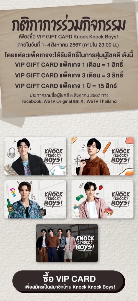 เพียงแค่ซื้อ WeTV VIP Card ในแอป WeTV >>> https://bit.ly/KnockKnockBoysFinal
