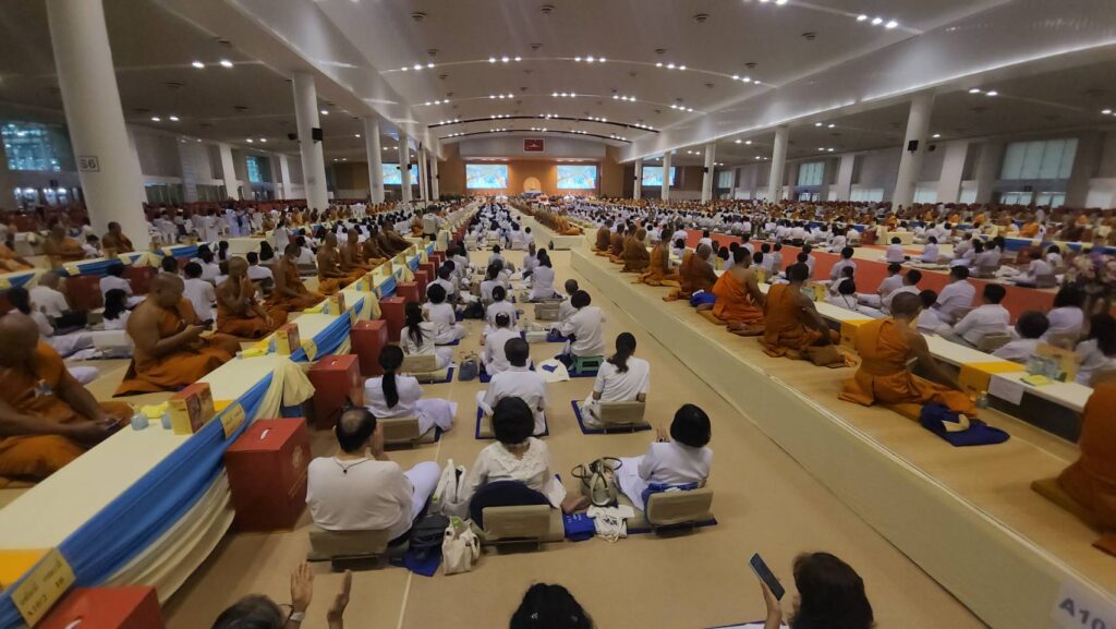 การนี้ ได้รับความเมตตาจากพระราชาคณะ พระเถรานุเถระ และเจ้าคณะพระสังฆาธิการ ร่วมงานด้วย อาทิ พระเดชพระคุณพระพรหมดิลก วัดสามพระยา, พระเดชพระคุณพระพรหมเสนาบดี กรรมการมหาเถรสมาคม เจ้าคณะภาค 7 เจ้าอาวาสวัดปทุมคงคา, พระเดชพระคุณพระพรหมโมลี กรรมการมหาเถรสมาคม ผู้รักษาการแทนเจ้าคณะใหญ่หนเหนือ เจ้าคณะภาค 5 แม่กองบาลีสนามหลวง วัดปากน้ำ ภาษีเจริญ, พระเดชพระคุณพระพรหมวชิโรดม เจ้าคณะภาค 10 รองแม่กองบาลีสนามหลวง โมลีโลกยารามราชวรวิหาร, พระเดชพระคุณพระพรหมวชิรานุวัตร ที่ปรึกษาเจ้าคณะภาค 3 เจ้าอาวาสวัดบพิตรพิมุขวรวิหาร, พระเดชพระคุณพระพรหมวัชรวิมลมุนี กรรมการมหาเถรสมาคม เจ้าคณะกรุงเทพมหานคร วัดมหาธาตุยุวราชรังสฤษฎิ์ราชวรมหาวิหาร, พระเดชพระคุณพระธรรมรัตนาภรณ์ ที่ปรึกษาเจ้าคณะภาค 1 เจ้าอาวาสวัดเขียนเขต, พระเดชพระคุณพระธรรมรัตนมงคล ที่ปรึกษาเจ้าคณะภาค 2 เจ้าอาวาสวัดพนัญเชิง วรวิหาร, พระเดชพระคุณพระธรรมวัชรวิสุทธิ์ ที่ปรึกษาเจ้าคณะภาค 10 เจ้าอาวาสวัดจักรวรรดิราชาวาสวรมหาวิหาร, พระเดชพระคุณพระธรรมพุทธิมงคล ที่ปรึกษาเจ้าคณะภาค 14 เจ้าอาวาสวัดป่าเลไลยก์วรวิหาร, พระเดชพระคุณพระธรรมวชิรเจติยาจารย์ ที่ปรึกษาเจ้าคณะภาค 14 รักษาการเจ้าอาวาสวัดพระปฐมเจดีย์ราชวรมหาวิหาร เป็นต้น โดยมีหลวงพ่อทัตตชีโว พร้อมด้วยพระครูปลัดรัตนวีรวัฒน์ เจ้าอาวาสวัดพระธรรมกาย และคณะสงฆ์วัดพระธรรมกายให้การต้อนรับ เนื่องด้วย ในวันที่ 6 สิงหาคมนี้ เป็นวันสมาธิโลก ภายในพิธีจึงจัดให้มีการปฏิบัติธรรม เจริญสมาธิภาวนา พร้อมกันทั้งศูนย์ส่งเสริมศีลธรรมจังหวัดทั่วประเทศและศูนย์สาขาต่างประเทศ จำนวน 200 กว่าแห่งทั่วโลก โดยในไทยเริ่มเวลา 9.30 น. ซึ่งตรงกับออสเตรเลีย 12.30 น. ญี่ปุ่น 11.30 น. จีน ไต้หวัน ฮ่องกง มาเลเซีย สิงคโปร์ 10.30 น. บาห์เรน 06.30 น. เยอรมัน สวิตเซอร์แลนด์ ฝรั่งเศส 03.30 น. ประเทศสหรัฐอเมริกา บอสตัน นิวยอร์ก ฟลอริดา 22.30 น. ชิคาโก 21.30 น. ลอสแองเจลิส วอชิงตัน ดีซี 19.30 น. เป็นต้น