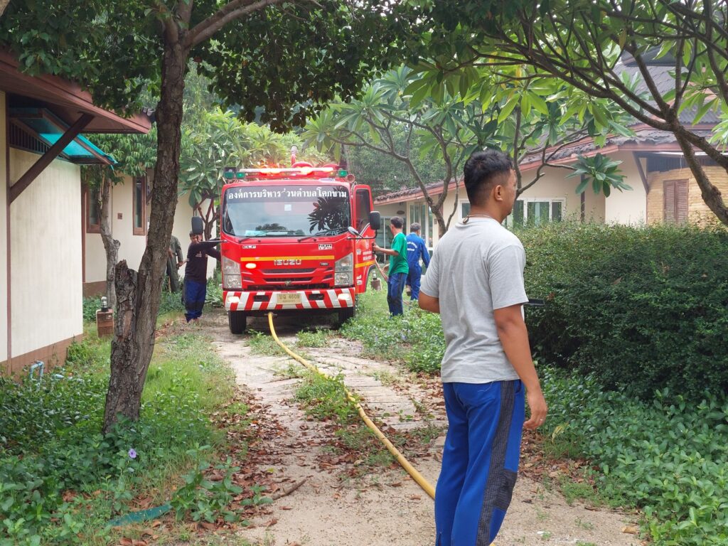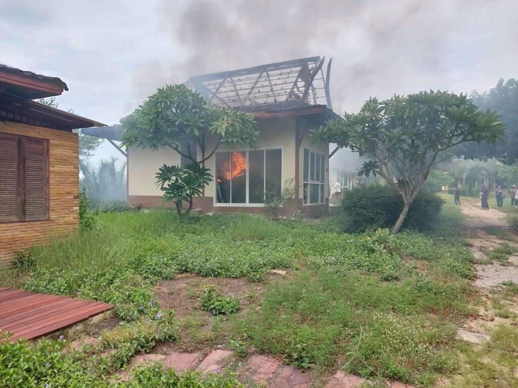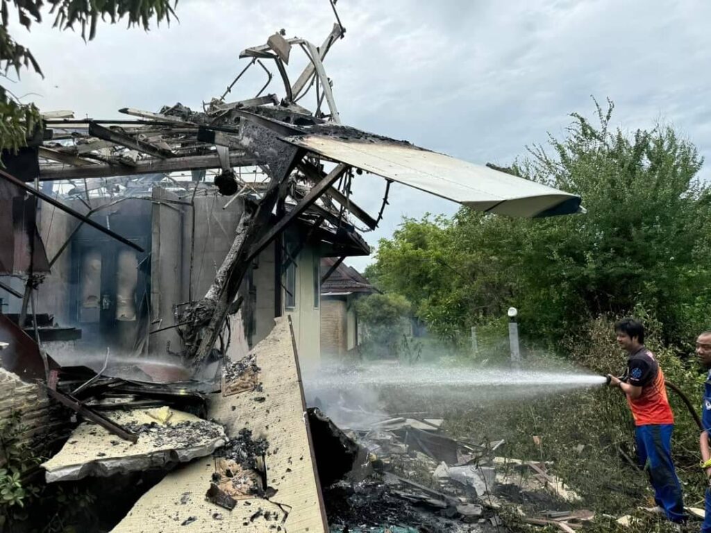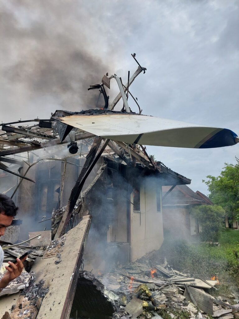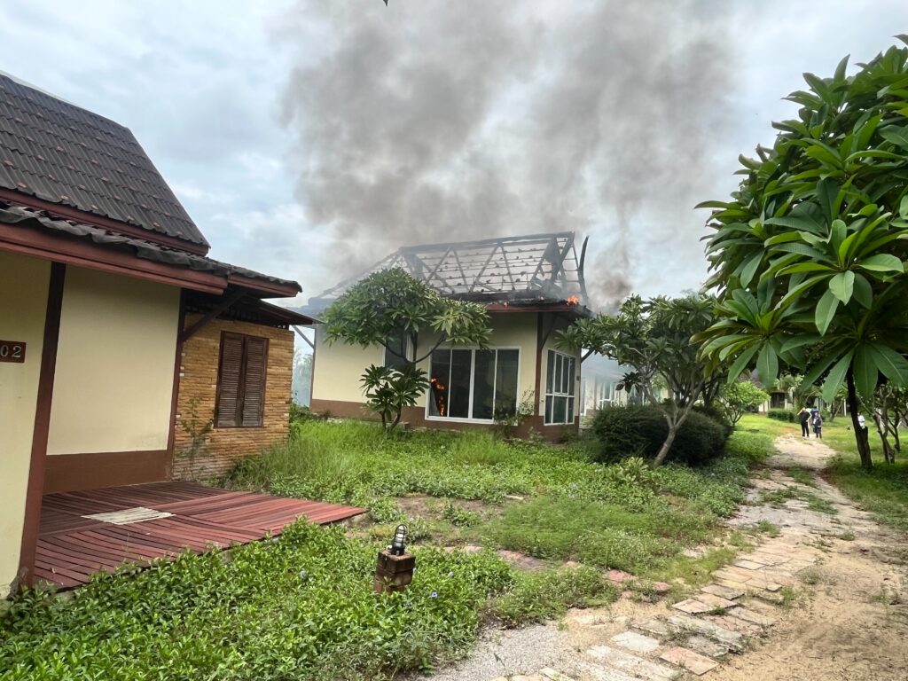 ที่เกิดเหตุ พบเครื่องบินเล็กแบบ 2 ที่นั่ง เลขเครื่อง HS-DEVรุ่น CH601 สภาพถูกไฟไหม้เสียหายทั้งลำเหลือแต่ส่วนปีกข้างซ้าย ที่ยังเห็นติดคาอยู่บนหลังคาของรีสอร์ท ห้อง303 โดยไฟได้ลุกไหม้บ้านและตัวเครื่องบินเล็ก จนต้องรีบประสานเจ้าหน้าที่ดับเพลิง อบต.โคกขาม ให้นำรถน้ำมาฉีดใช้เวลาประมาณ 20 นาที เพลิงจึงสงบ