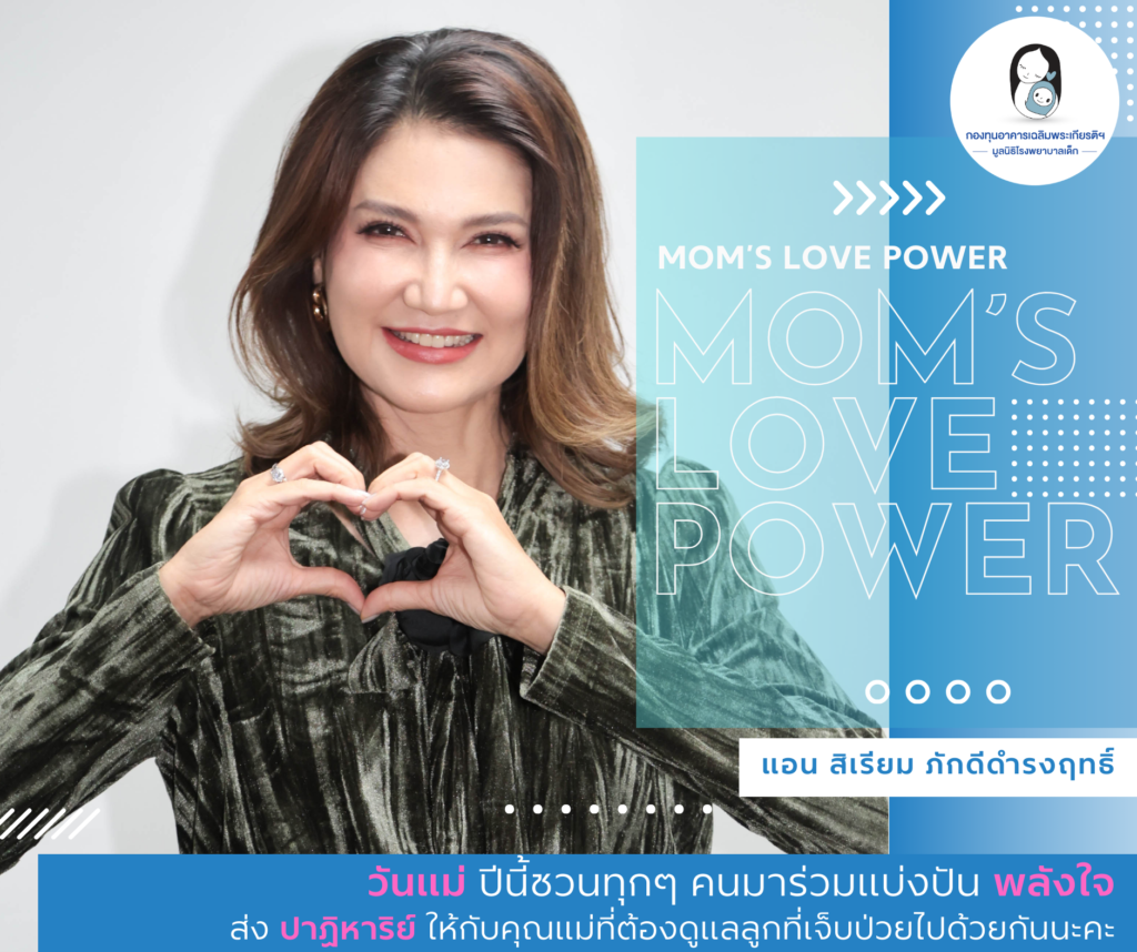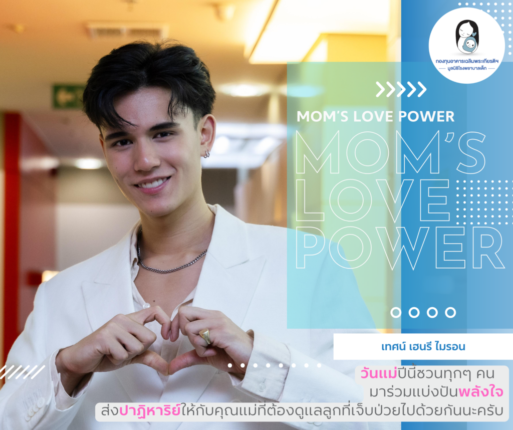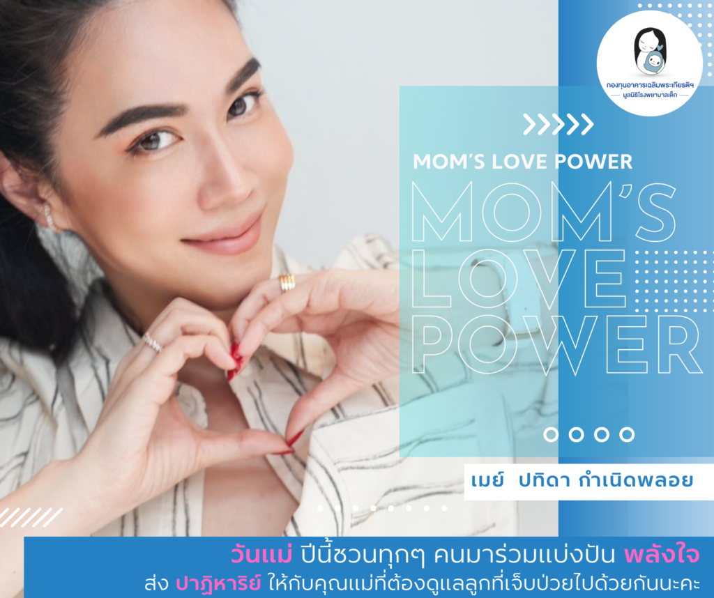 ต้อนรับวันแม่ที่กำลังมาถึง มูลนิธิโรงพยาบาลเด็ก กองทุนอาคารเฉลิมพระเกียรติฯ ชวนทุกคนร่วมส่งกำลังใจ ให้กำลังชีวิตกับคุณแม่ที่ต้องดูแลลูกป่วย ผ่านแคมเปญ Mom’s Love Power กำลังใจจากแม่สู่แม่ โดย คุณปริศนา กล่ำพินิจ AVP กิจการองค์กร นำทีมนักแสดงและผู้ประกาศข่าวจากไทยทีวีสีช่อง 3 ร่วมสนับสนุนโครงการฯ อาทิ มาริโอ้ เมาเร่อ, น้ำตาล พิจักขณา, กองทัพ พีค, เทศน์ เฮนรี ไมรอน, อุ้ม อิษยา, พีพี ปุญญ์ปรีดี, มิ้นท์ รัญชน์รวี ฯลฯ ร่วมด้วยคุณแม่นักแสดงอย่าง นก สินจัย, แอน สิเรียม, อ้อม พิยดา, เมย์ ปทิดา, แพท ณปภา, น้ำฝน พัชรินทร์, มะปราง กุลภัสสรณ์ ฯลฯ และเหล่าผู้ประกาศข่าวช่อง 3 ดร.อริสรา กำธรเจริญ, โอ๊ค นิธินาฏ, ตูน ปรินดา, ทีมพิธีกรผู้หญิงยกกำลังแจ๋ว – ข่าวสามสี ฯลฯ ร่วมทำกิจกรรมโชว์พลัง Mom’s Love Power สัญลักษณ์รูปหัวใจ ผ่านสื่อโซเชียลของตัวเอง เพื่อส่งกำลังใจให้เหล่าคุณแม่ผู้ดูแลลูกป่วยได้มีแรงสู้ไปพร้อม ๆ กับลูก