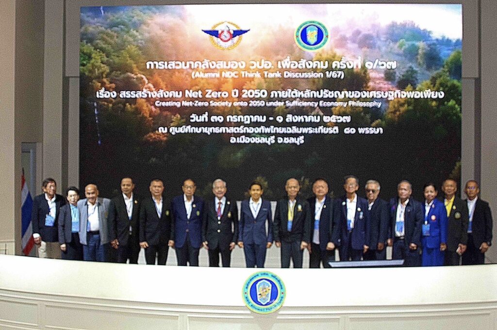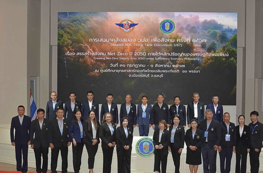 เมื่อวันที่ 31 กรกฎาคม 2567 พลเอก บุญสร้าง เนียมประดิษฐ์ ประธานคลังสมองอาวุโส วปอ. เพื่อสังคม ปวิธายุวัฒน์ เป็นประธานในการเสวนาทางวิชาการ คลังสมอง วปอ. เพื่อสังคม ครั้งที่ 1/2567 เรื่อง “สรรสร้างสังคม Net Zero ปี 2050 ภายใต้หลักปรัชญาของเศรษฐกิจพอเพียง” ณ ศูนย์ศึกษายุทธศาสตร์กองทัพไทย เฉลิมพระเกียรติ 80 พรรษา แหลมแท่น จ.ชลบุรี โดยในโอกาสนี้ได้รับเกียรติจาก พลเอก นรินทร์ แทบประสิทธิ์ ประธานมูลนิธิคลังสมอง วปอ. เพื่อสังคม, คณะผู้บริหารมูลนิธิฯ, พลโท มนัส แถบทอง ผู้อำนวยการหลักสูตรผู้นำพอเพียงเพื่อความมั่นคง (นพม.) พร้อมผู้เข้ารับการอบรมหลักสูตรผู้นำพอเพียงเพื่อความมั่นคง รุ่นที่ 17 ร่วมรับฟังการเสวนาครั้งนี้