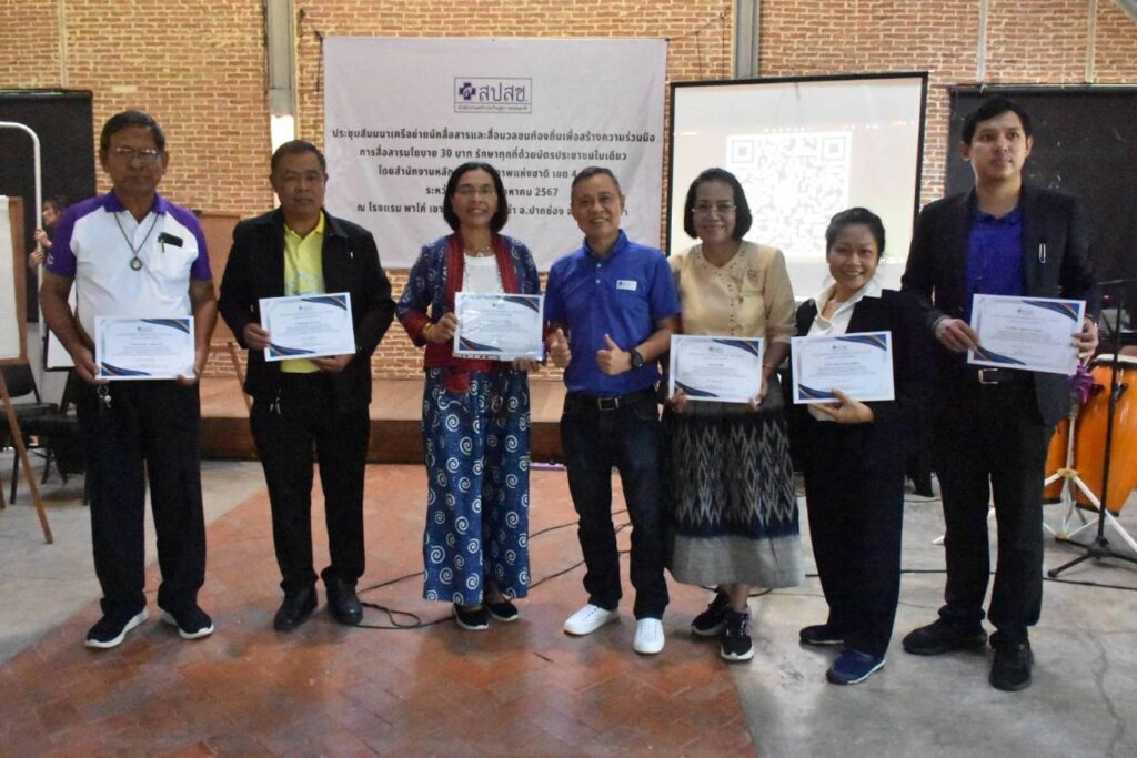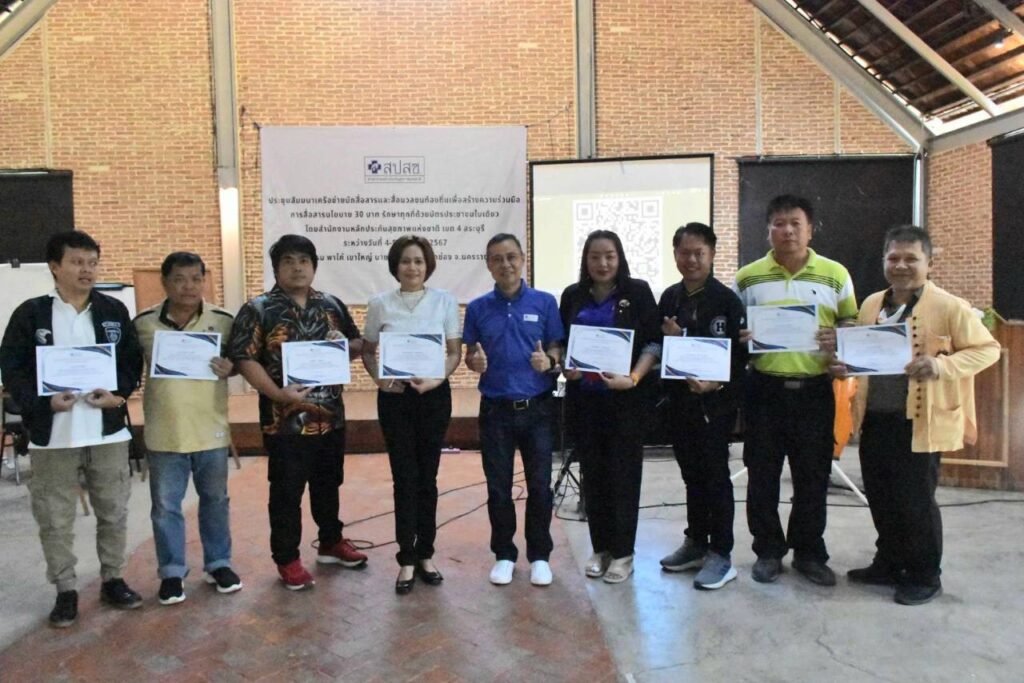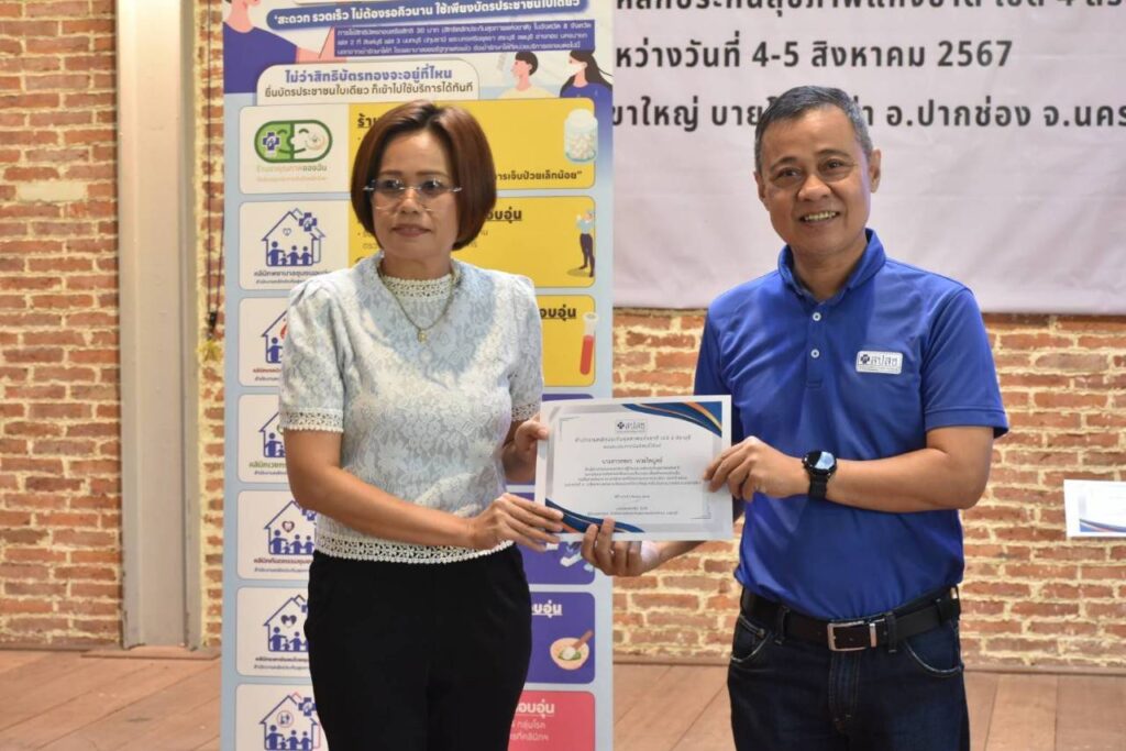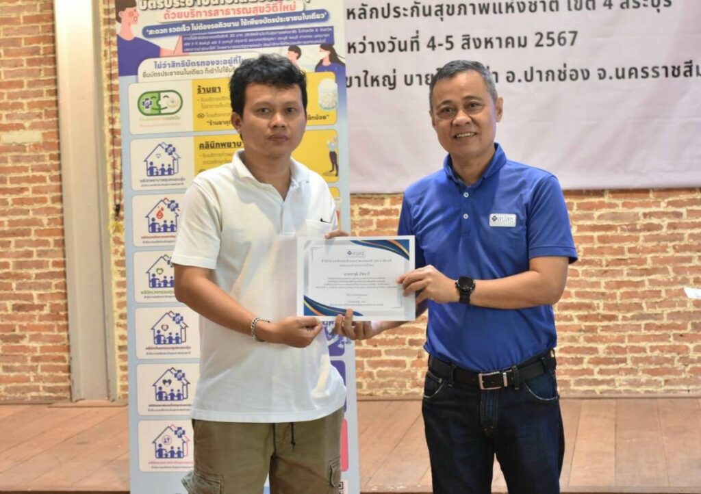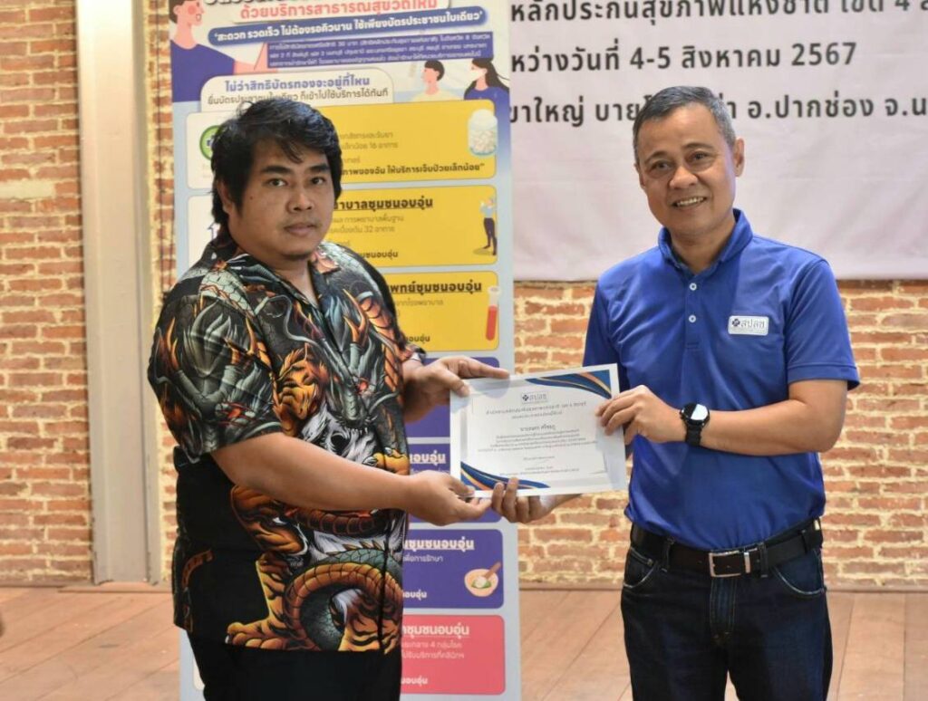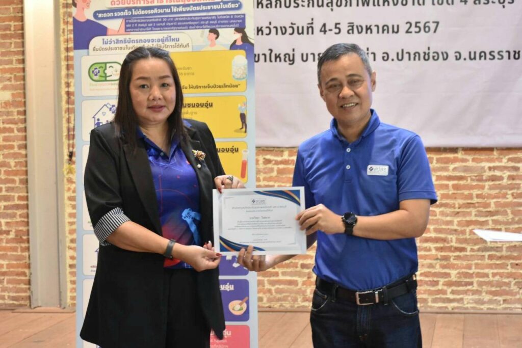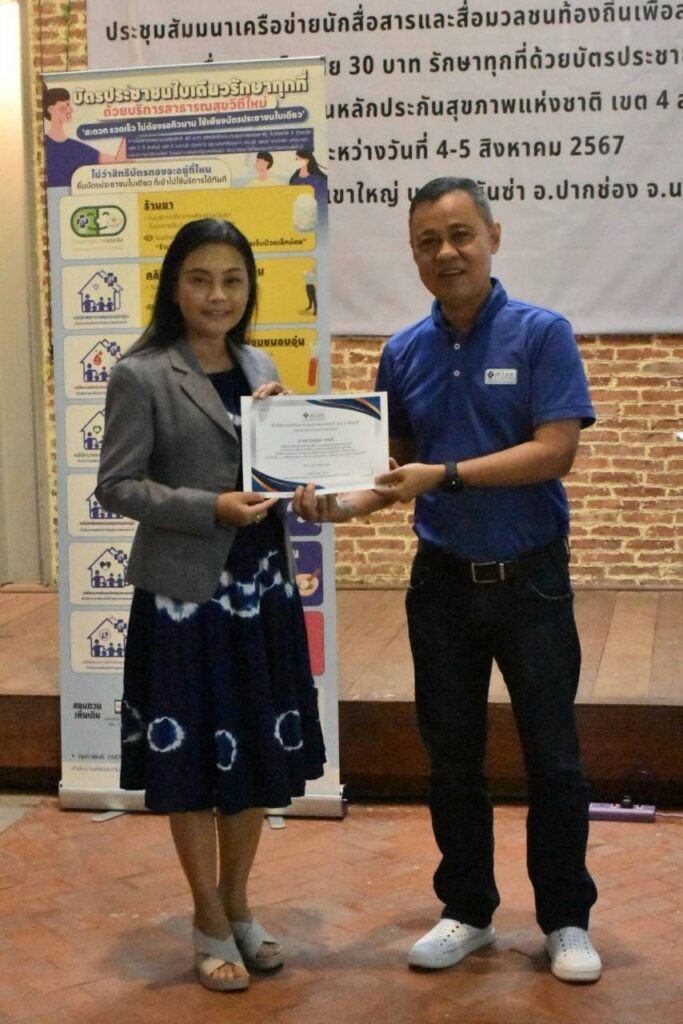วันที่ 4-5 ส.ค. 2567 ณ ห้องประชุมโรงแรม พาโค่ เขาใหญ่ บายโบนันซ่า อ.ปากช่อง จ.นครราชสีมา สำนักงานหลักประกันสุขภาพแห่งชาติ (สปสช.) เขต 4 สระบุรี จัดประชุมสัมมนาเครือข่ายนักสื่อสารและสื่อมวลชนท้องถิ่นเพื่อสร้างความร่วมมือในการสื่อสารสิทธิหลักประกันสุขภาพและนโยบาย 30 บาทรักษาทุกที่ด้วยบัตรประชาชนใบเดียว โดยมี นายแพทย์วิชัย โชควิวัฒน กรรมการหลักประกันสุขภาพแห่งชาติ (บอร์ด สปสช.) ให้เกียติบรรยายพิเศษหัวข้อ “ที่มาของหลักประกันสุขภาพไทย” มี นายแพทย์สมชาติ สุจริตรังษี ผู้อำนวยการกลุ่ม สปสช.เขต 4 สระบุรี กล่าวต้อนรับ จากนั้น นายแพทย์สาธิต ทิมขำ ผู้อำนวยการเขต สปสช.เขต 4 สระบุรี เข้าพบปะพูดคุยกับเครือข่ายนักสื่อสารและสื่อมวลชนท้องถิ่น โดยมีผู้เข้ารับการอบรมจากผู้บริหารและบุคลากรจากประชาสัมพันธ์จังหวัด, อาสาสมัครประชาสัมพันธ์ประจำหมู่บ้านลและชุมชน (อป.มช.), สื่อมวลชนท้องถิ่น, ผู้แทนจากศูนย์คุ้มครองสิทธิบัตรทอง ในพื้นที่ 8 จังหวัด รวม 70 คน
