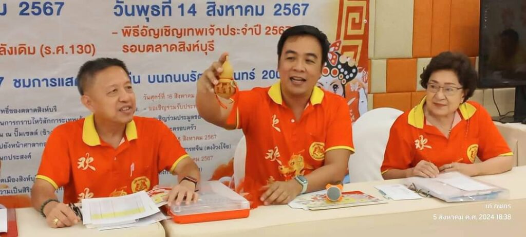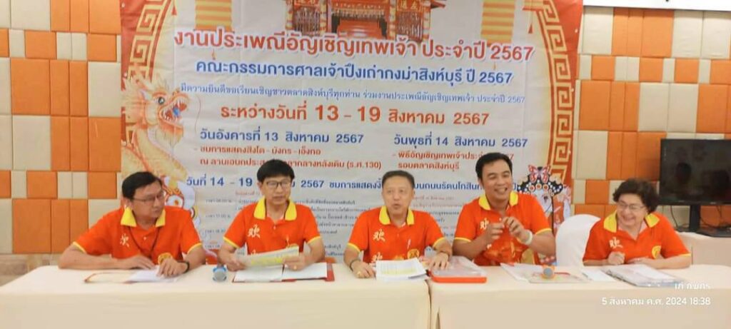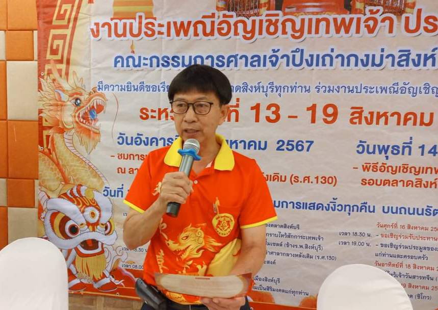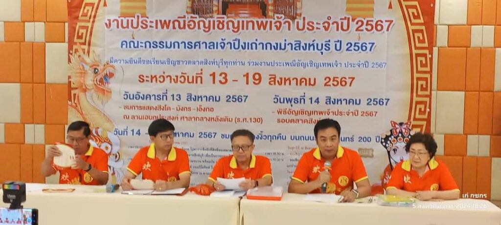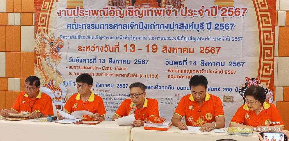 วันที่ 5 ส.ค.67 เวลา 18.00 น. คณะกรรมการศาลเจ้าสิงห์บุรี ได้มีการจัดเตรียมงานประเพณีอัญเชิญเทพเจ้า เพื่อความเป็นสิริมงคล เจริญรุ่งเรือง และอยู่เย็นเป็นสุขของชุมชนชาวตลาดสิงห์บุรี กลายเป็นประเพณีที่จัดขึ้นทุกปี งานประเพณีอัญเชิญเทพเจ้าและการแสดงงิ้วจัดขึ้นมานานกว่า 100 ปี มีเทพเจ้าจีนที่คนจีนและลูกหลานในประเทศไทยให้ความเคารพนับถือก็คือ 1.เจ้าแม่กวนอิม 2.พระสังขจาย 3.เทพเจ้าปึงเถ่ากง ปึงเถ่าม่า หรือถ้าแปลเป็นภาษาไทยก็คือ เจ้าปู่ เจ้าย่า 4.เจ้าแม่ทับทิม 5.เทพเจ้าไฉ่ชิงเอี๊ยหรือเทพเจ้าแห่งโชคลาภ 5.เจ้าพ่อเสือหรือตัวเหล่าเอี้ย 6.เทพเจ้าแป๊ะกงหรือเทพเจ้าที่ และอื่นๆ ตามแต่ละชุมชนที่จะศรัทธากัน จากแผ่นดินจีนใหญ่ข้ามท้องทะเลมหาสมุทรมาสู่ประเทศไทย โดยมีการตั้งศาลเจ้าประจำชุมชนแต่ละท้องที่ขึ้นไว้เป็นที่บูชาในตลาดสิงห์บุรี ก็คือศาลเจ้าบุญเถ้ากงม่าสิงห์บุรี บรรพชนชาวไทยเชื้อสายจีนเมื่อได้เข้ามาทำมาหากินอยู่ในแผ่นดินสยาม โดยได้รับพระมหากรุณาธิคุณแห่งพระมหากษัตริย์ไทย ให้อยู่ใต้พระบรมโพธิสมภาร ได้รับความร่มเย็นเป็นสุข และค้าขายเจริญรุ่งเรือง นับแต่เดินทางมาอยู่จนถึงปัจจุบัน ลูก-หลานซึ่งเป็นคนไทยเชื้อสายจีนที่อยู่ในชุมชนต่างๆ เมื่อรวมตัวกันแล้ว ก็จะขยันขันแข็งในการทำมาหากิน มีโอกาสก็ตอบแทนคุณของแผ่นดิน และยังคงรักษาวัฒนธรรมดั้งเดิมที่บรรพบุรุษปฏิบัติสืบต่อเนื่องกันมาจนถึงปัจจุบัน กลายเป็นประเพณีทุกๆ ปี โดยปีนี้มีคณะกรรมการศาลเจ้า (เถ่านั้ง) เป็นผู้รับผิดชอบการจัดงานประเพณีอัญเชิญเทพเจ้าประจำในแต่ละปี.ซึ่งในปีนี้ตรงกับวันพุธที่ 14 ถึงวันจันทร์ที่ 19 สิงหาคม 2567 ที่จะถึงนี้
