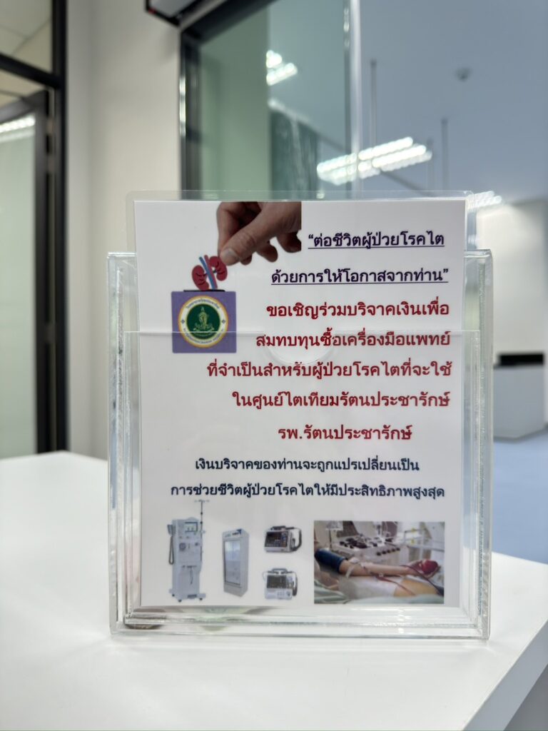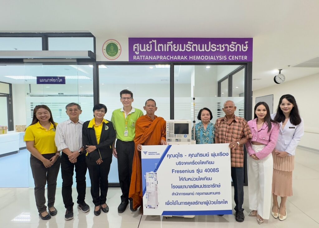 วันนี้ 5 สิงหาคม 2567 เวลา 09.00 น. พระสิทธิสิงหเสนี เจ้าอาวาสวัดพระยาสุเรนทร์ ได้นำคุณรุ้ง ธนิภา พุ่มเรือง กรรมการผู้จัดการบริษัทไทยดีเอฟ 2564 จำกัด (Thai DF 2564) คุณอุไร พุ่มเรือง และคุณภิรมย์ พุ่มเรือง เข้ามอบ เครื่องไตเทียม ยี่ห้อ Fresenius นำเข้าจากประเทศเยอรมันนี ให้ศูนย์ไตเทียมรัตนประชารักษ์ โรงพยาบาลรัตนประชารักษ์ สำนักการแพทย์ กรุงเทพมหานคร เพื่อไว้ให้ช่วยเหลือผู้ป่วยโรคไตในพื้นที่เขตคลองสามวาและบริเวณใกล้เคียง โดยมีนายแพทย์สุธน เอกเสถียร ผู้อำนวยการโรงพยาบาลรัตนประชารักษ์ แพทย์หญิงพิมพ์จิรา กนกทิพากร แพทย์เฉพาะทางอายุรศาสตร์โรคไต นพ.วันชัย นพนาคีพงษ์ และ คุณปัทมา ภูพิพัฒน์ผล โรงพยาบาลรัตนประชารักษ์ เป็นตัวแทนรับมอบ นอกจากนี้คุณรุ้ง ธนิภา ยังจัดทำกิจกรรมสั้นๆ ภายใต้แคมเปญ “ต่อชีวิตผู้ป่วยโรคไต ด้วยการให้โอกาสจากท่าน” เพื่อรวบรวมเงินจากผู้มีจิตศรัทธามาซื้อเครื่องมือการแพทย์ที่จำเป็นและต้องใช้ภายในศูนย์ไตเทียมรัตนประชารักษ์ อีกด้วย ทั้งนี้คุณรุ้งกล่าวว่า
