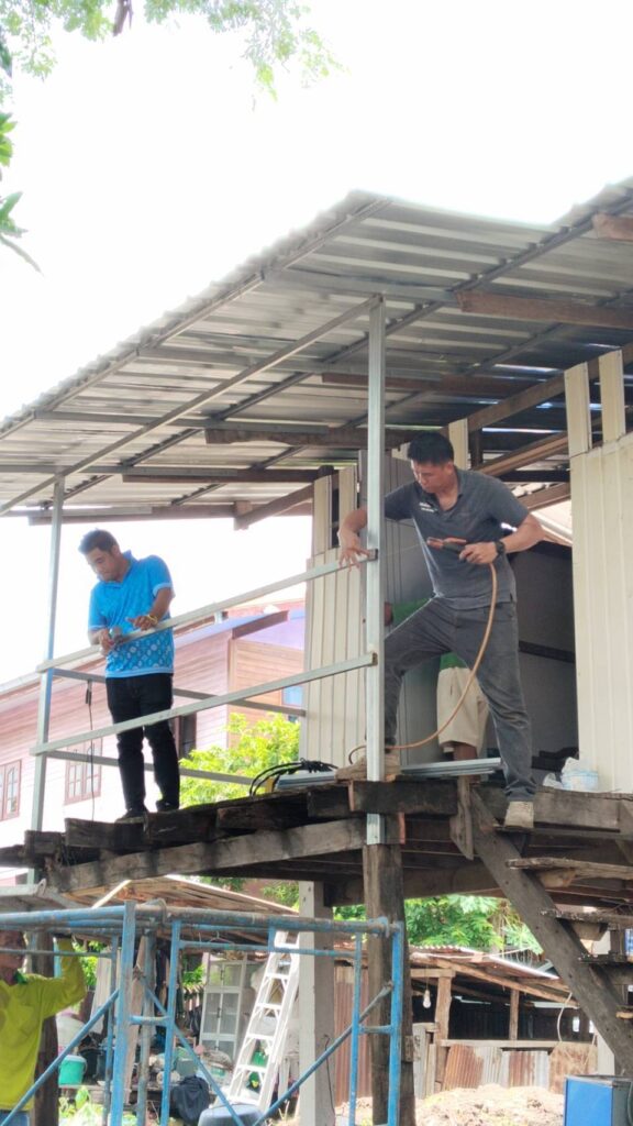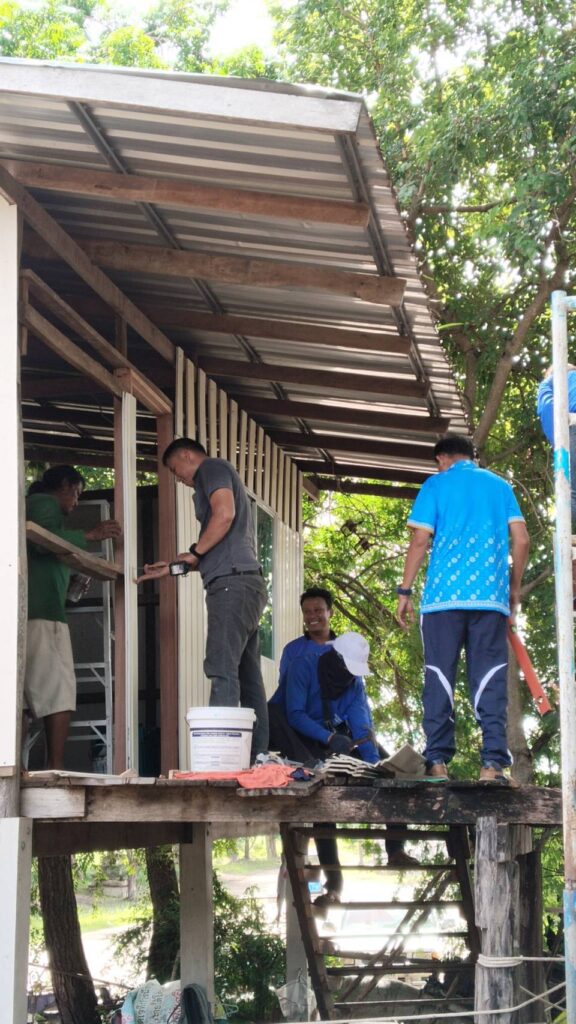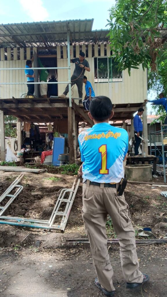 ได้นำทีมงานช่าง อบต. หนองทรายขาว และกำลังพลทหาร พัน.ปฐบ.ศบบ. เพื่อทำการลงพื้นที่ซ่อมแซมบ้านพักอาศัยดังนี้