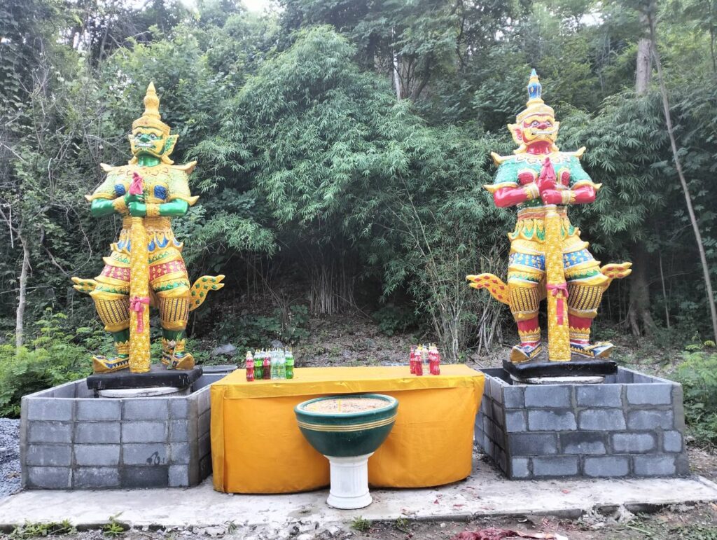 รวมทั้งบูชา ดอกกุหลาบแดง น้ำแดง ประทัด กราบไหว้ขอโชคลาภจาก ท้าวเวสสุวรรณโณ (ท้าวเวสเศรษฐี) ปางยักษ์องค์ยืนสูงใหญ่หันหน้าออกไปทางซุ้มประตู
