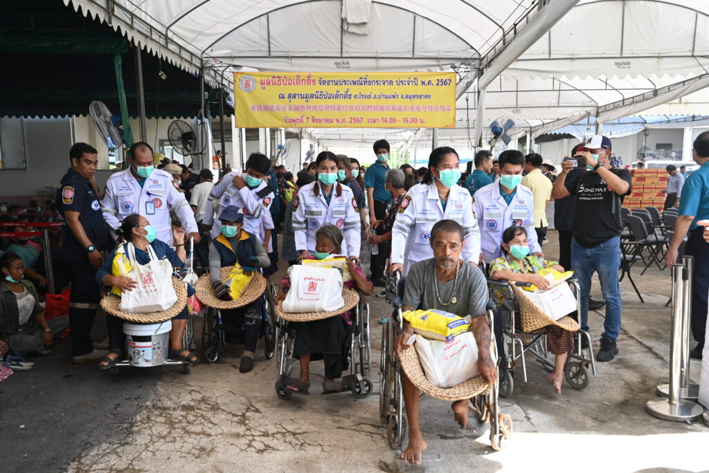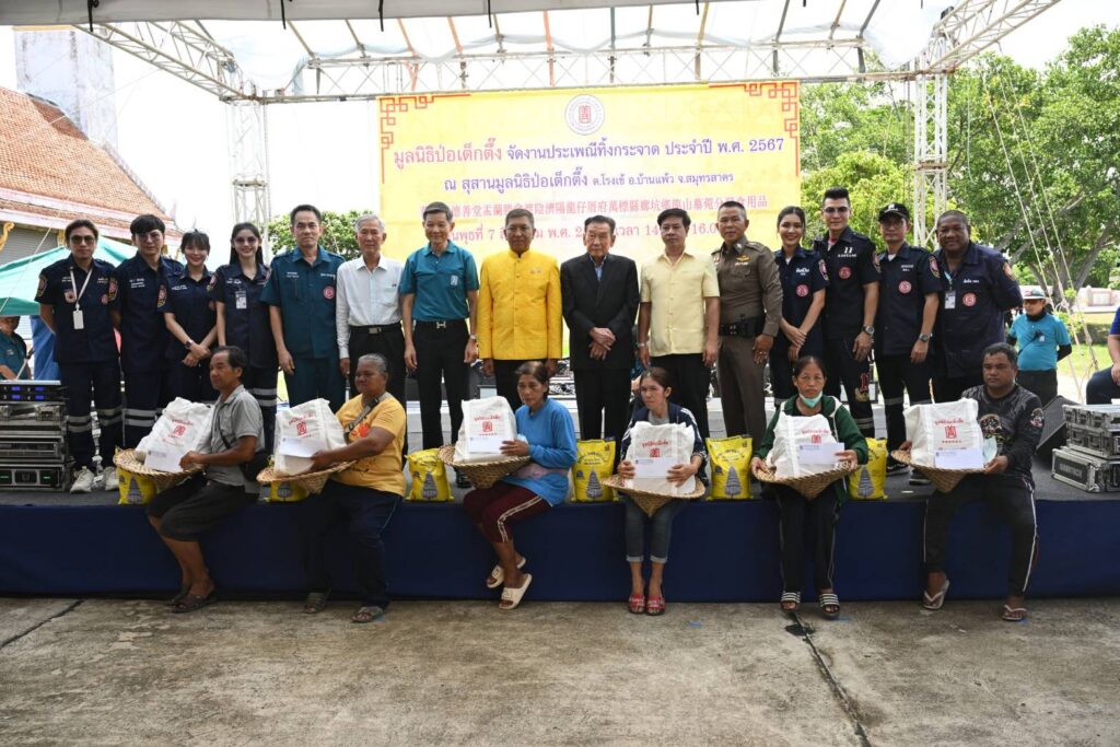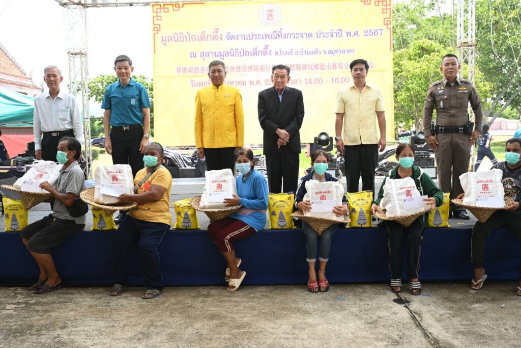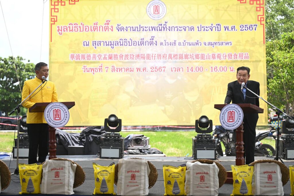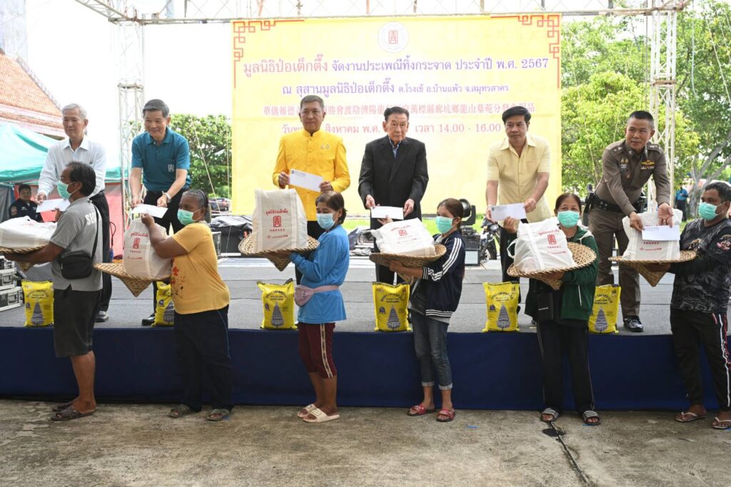 วันนี้ (วันพุธที่ 7 สิงหาคม พ.ศ. 2567) มูลนิธิป่อเต็กตึ๊ง นำโดย ดร.สุทัศน์ เตชะวิบูลย์ รองประธานกรรมการ พร้อมด้วย นายวิชิต ชินวงศ์วรกุล รองประธานกรรมการ และนางชุติมา ตันติศิริวัฒน์ ผู้ช่วยกรรมการ จัดพิธีแจกข้าวสารพร้อมเครื่องอุปโภคบริโภค เนื่องในประเพณีทิ้งกระจาด ประจำปี 2567 ให้กับประชาชนผู้ยากไร้ที่อาศัยอยู่ในพื้นที่ใกล้เคียงรอบสุสานมูลนิธิป่อเต็กตึ๊ง ตำบลโรงเข้ อำเภอบ้านแพ้ว จังหวัดสมุทรสาคร จำนวน 4,000 ชุด สิ่งของที่แจกประกอบด้วย ข้าวสาร บะหมี่กึ่งสำเร็จรูป ปลากระป๋อง น้ำปลา น้ำมันพืช และขนม บรรจุถุงผ้ามูลนิธิฯ พร้อมมอบค่าพาหนะคนละ 100 บาท โดยมี นายวรณัฎฐ์ หนูรอต รองผู้ว่าราชการจังหวัดสมุทรสาคร เป็นประธานในพิธี ณ สุสานมูลนิธิป่อเต็กตึ๊ง ตำบลโรงเข้ อำเภอ