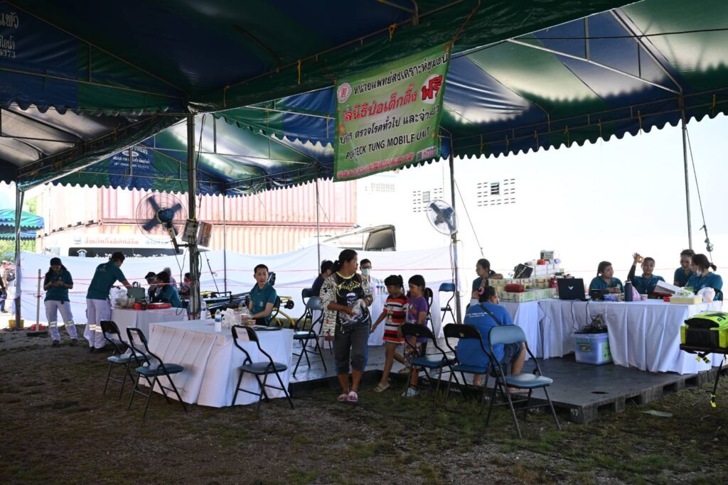 ภายในงาน มูลนิธิป่อเต็กตึ๊งได้จัดเจ้าหน้าที่ – อาสาสมัครมูลนิธิฯ ดูแลอำนวยความสะดวกแก่ประชาชนที่มารอรับ พร้อมบริการอาหารและน้ำดื่ม รวมถึงจัดหน่วยแพทย์สงเคราะห์ชุมชน (หน่วยแพทย์เคลื่อนที่) ออกบริการประชาชน โดยมีอาสาสมัครศิลปิน นำโดย นายธวัชชัย คชาอนันต์ (แฮ็ค ชวนชื่น) นายรัชต์พงษ์ ทองทับ (น้าทูล) นางสาวอรภัสญาน์ สุกใส (มิ้วส์) นางสาวพัชรมัย บุญเลิศกุล (แพรว) นายปิยะวัฒน์ รัตนหรูวิจิตร (หรูหรา) นายจตุรภัทร นิยมแสง (ต้า) ฯลฯ ร่วมสร้างสีสันภายในงาน โดยบรรยากาศเต็มไปด้วยความอิ่มเอมใจทั้งผู้ให้และผู้รับ