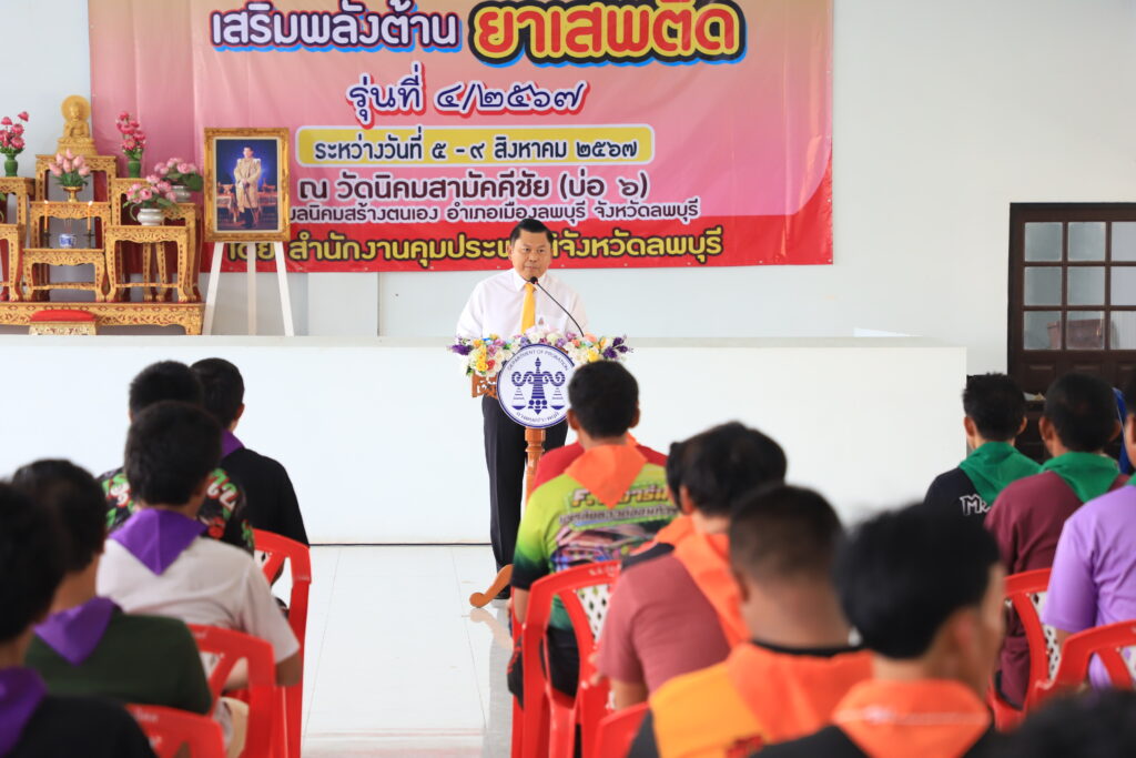 วันที่ 7 สิงหาคม 2567 เวลา 13.00 น. ที่วัดนิคมสามัคคีชัย(บ่อ 6) ตำบลนิคมสร้างตนเอง อำเภอเมืองลพบุรี จังหวัดลพบุรี นายปรัชญา เปปะตัง รองผู้ว่าราชการจังหวัดลพบุรี เป็นประธานเปิดโครงการ “สานสัมพันธ์ น้อง-พี่ เสริมพลังต้านยาเสพติด”รุ่นที่ 4 โดยมี นางละอองทิพย์ ปนัดสาโก ผู้อำนวยการสำนักงานคุมประพฤติจังหวัดลพบุรี นางชนิตตา แสงพลบ โยธาธิการและผังเมืองจังหวัดลพบุรี ส่วนราชการ ผู้แทนฯ คณะวิทยากร อาสาสมัครคุมประพฤติ เข้าร่วม