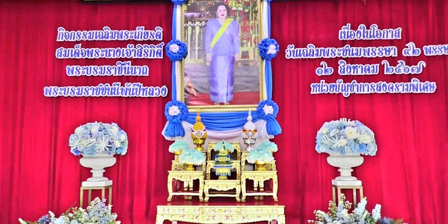 ที่ แหล่งสมาคมหน่วยบัญชาการสงคามพิเศษ ค่ายสมเด็จพระนารายณ์มหาราช อ.เมือง จ.ลพบุรี พลโท วัฒนา ฉัตรรัตนแสง ผู้บัญชาการหน่วยบัญชาการสงคามพิเศษ เป็นประธาน นำข้าราชการกำลังพล จากหน่วยขึ้นตรงในพื้นที่ จังหวัดลพบุรี ตลอดจนสมาชิกสมาคมแม่บ้านทหารบก สาขาหน่วยบัญชาการสงครามพิเศษ คณะครูนักเรียนโรงเรียนกองทัพบกอุปถัมภ์ค่ายนารายณ์ศึกษา ร่วมประกอบ พิธีถวายเครื่องราชสักการะ ถวายราชสดุดี เฉลิมพระเกียรติ และร่วมกันขับร้องบทเพลง “สรรเสริญพระบารมี” พร้อมทั้งร่วมกันลงนามถวายพระพรชัยมงคล ต่อเบื้องหน้าพระบรมฉายาลักษณ์ สมเด็จพระนางเจ้าสิริกิติ์ พระบรมราชินีนาถ พระบรมราชชนนีพันปีหลวง เนื่องในโอกาสวันเฉลิมพระชนมพรรษา 92 พรรษา 12 สิงหาคม 2567