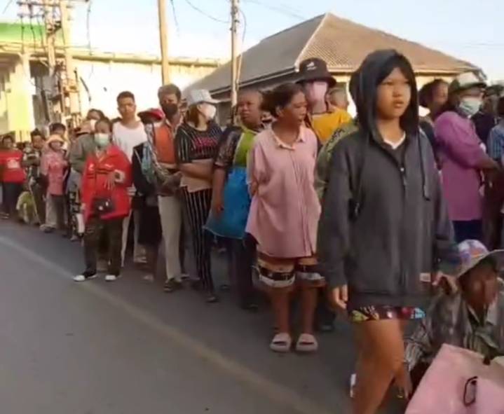 สะท้อนสังคม ชาวบ้านกว่า 7 พันคนมารอตั้งแต่เช้าได้บ่ายเพื่อข้าวสาร 2 ถุง ประทังชีวิตคนทั้งครอบครัว