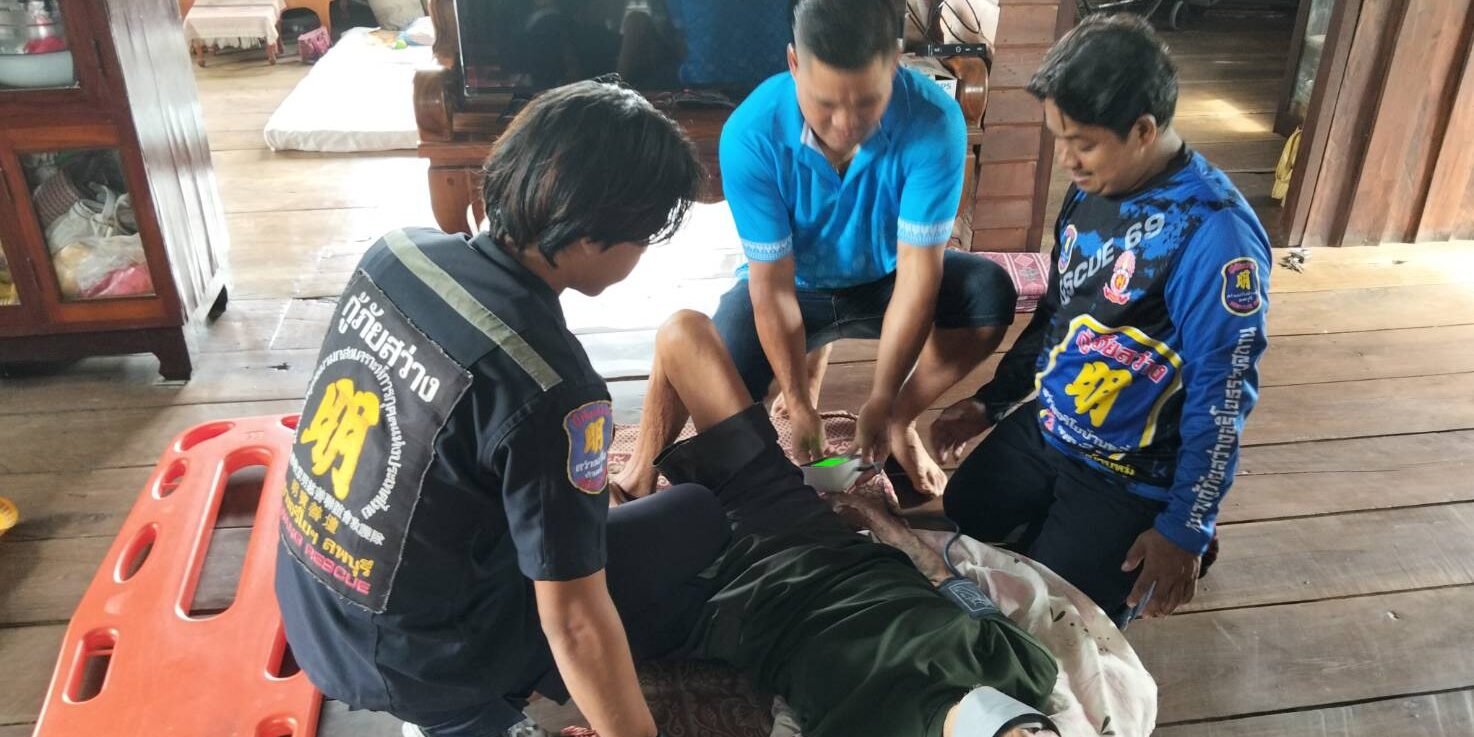 ประสานรถกู้ภัยสว่างอริโยบ้านหมี่ ลพบุรี พร้อมลงพื้นที่ช่วยเหลือ และได้นำตัวส่ง รพ.บ้านหมี่ เพื่อเข้าการรักษาตัวต่อไป