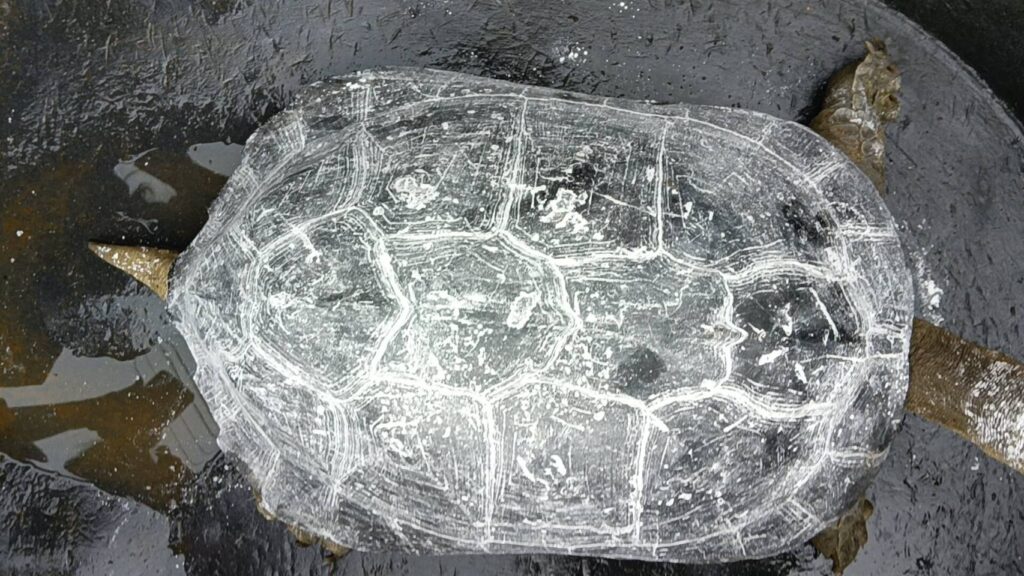 นางสาวกัญญาณัฐ ยอดมาเจ้าของบ้าน กล่าวว่า เมื่อเช้าวันที่ 12 สิงหาคม ที่ผ่านมาซึ่งตรงกับวันพระประมาณ 6 โมงเช้า ได้ยินสุนัขเห่า จึงออกมาเห็นเต่าคลานมาหน้าบ้าน จึงรู้สึกตกใจและคิดว่าทุกทีจะมีเต่าเข้ามาบ้าน แต่ด้วยไม่ใช่ตัวใหญ่มากขนาดนี้ อีกทั้งคิดว่าวันนี้เป็นพระด้วย เลยคิดว่าเป็นนิมิตหมายดีที่เต่าตัวนี้ได้นำสิ่งดีๆ มาให้ครอบครัว โดยก่อนหน้านี้เคยมีเต่าคลานมาที่บ้านแล้ว แต่ตัวเล็กกว่านี้ แต่ตัวนี้ ความยาว53 กว้าง45 จึงนำเต่ามาดูอย่างละเอียด ทำให้พบความแปลกประหลาดสร้างความตื่นเต้น และความดีใจเพราะเชื่อว่าเป็นสัตว์ที่เป็นมงคล ตามความเชื่อโบราณเต่าจะเด่นด้านการมีอายุที่ยืนยาว โบราณบอกว่าบ้านไหนหากมีเต่าคลานเข้าบ้านถือว่าบ้านนั้นจะมีโชคมีลาภ จากการ สังเกตที่ลำตัวมีขนาดใหญ่มากกว่าเต่าทั่วๆ ไป คาดว่ามีอายุมากไม่ต่ำกว่า 60 ปี