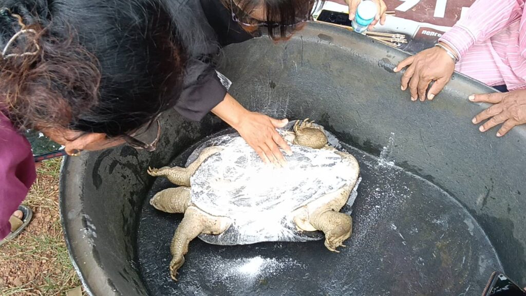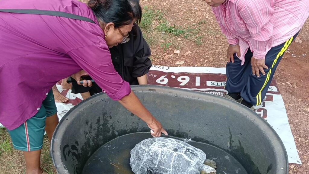 ส่วนเต่าตัวนี้ชั่งน้ำหนักได้ 11 กิโลกรัม คิดว่าหลังจากนี้จะนำไปปล่อยที่วัดต่อไป เพราะเป็นห่วงความปลอดภัย เนื่องจากหน้าบ้านอยู่ติดถนนกลัวจะเป็นอันตราย อย่างไรก็ตาม มีเพื่อนบ้านทราบข่าวได้เดินทางมาดูความแปลกมหัศจรรย์ของเต่ายักษ์ พร้อมใช้แป้งทาลูบบนกระดองและใต้ท้อง หวังจะมีเลขเด็ดขึ้นให้เห็น บางคนเป็นเลข817 บางคนเห็นเลข 69 และ11 อีกทั้งยังสอบถามน้ำหนักของเต่ายักษ์ตัวนี้ และบ้านเลขที่ของเจ้าของบ้านด้วย ไปเสี่ยงโชคงวดนี้
