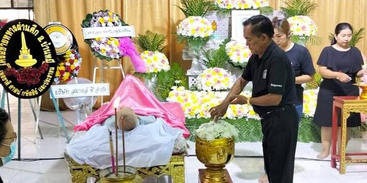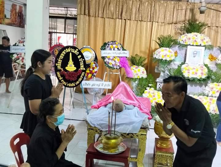 ประธานรดน้ำศพ และวางพวงหรีดเคารพศพของ “คุณพ่อสว่าง ตันศิริ อายุ 88 ปี หมู่ที่ 6 บ้านเนินยาว” ตั้งบำเพ็ญกุศลศพที่ วัดบ้านเนินยาว ต.หนองทรายขาว อ.บ้านหมี่ จ.ลพบุรี