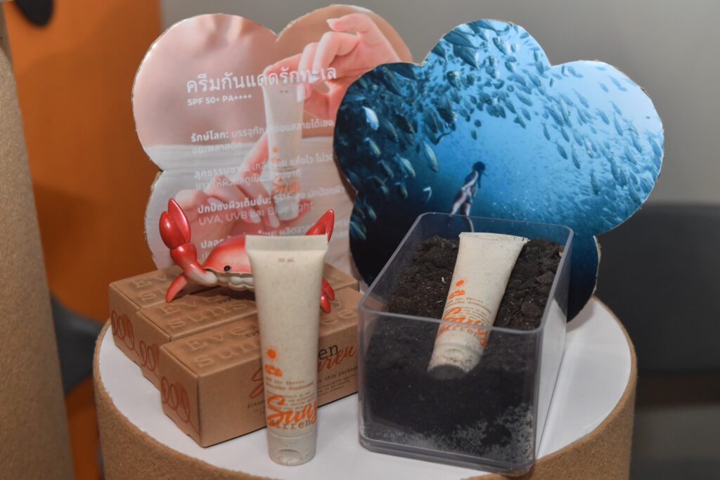 2. Green Business: แหล่งรวมธุรกิจท่องเที่ยวยั่งยืน มีให้ช้อปแบบครบจบทั้งโรงแรม ที่พัก กิจกรรม สินค้า แพ็กเกจท่องเที่ยว และ workshop ที่น่าสนใจ อาทิ การย้อมผ้าด้วยดินจากเกาะหมาก จาก Roja Studio of Art เกาะหมาก หน้าฝนบนดอย อาหารที่จะได้กินเมื่อเดินขึ้นดอย จากเชฟแบล๊คและเชฟเบียร์ Blackitch Artisan Kitchen เชียงใหม่ หรือการ เบลนด์ชา จาก Araksa Tea Garden