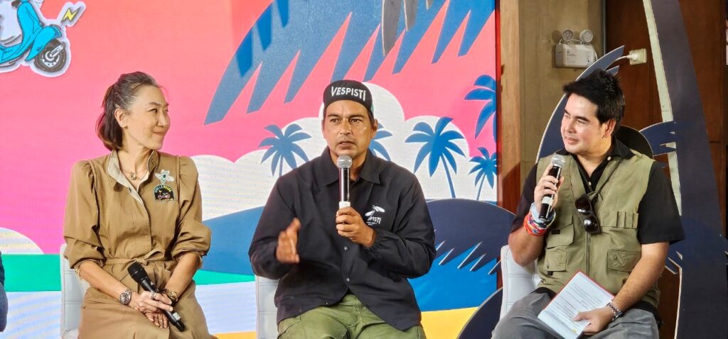 นางสาวภัคฤดี ยงสุวิมล ผู้จัดการทั่วไป บริษัท วีพีพีดับเบิลยู ซัพพลายส์ จำกัด ผู้จัดจำหน่ายสกู๊ตเตอร์พรีเมี่ยมชั้นนำ และมอเตอร์ไซค์สัญชาติอิตาเลียนระดับตำนานจากกลุ่ม Piaggio Group เสริมว่า ในกิจกรรมครั้งนี้จะมีสมาชิก Vespa ในจังหวัดต่าง ๆ ทั่วประเทศไทย โดยเฉพาะในภาคใต้เดินทางมาร่วมงานพร้อมนำรถเวสป้าคู่ใจมาให้คนรัก Vespa ได้ชื่นชม ซึ่งจะเป็นส่วนหนึ่งของการส่งเสริมการท่องเที่ยวภาคใต้ ที่มีเส้นทางขับรถเที่ยวที่สวยงาม น่าประทับใจ ในโอกาสของงานแถลงข่าววันนี้ 3 พรีเซนเตอร์ ของ Vespa นายพุฒิพงศ์ ศรีวัฒน์ (ลีโอ พุฒ) นายเผ่าพล เทพหัสดิน ณ อยุธยา (ต้า บาร์บี้) และนายเร แม็คโดแนลด์ ได้แชร์ความรู้สึก ความประทับใจและมิตรภาพ ประสบการณ์ที่ได้จากการขี่เวสป้าเที่ยวภาคใต้ พร้อมการโชว์รถเวสป้าคู่ใจของสมาชิก Vespa Thailand กว่า 50 คัน