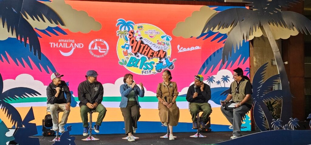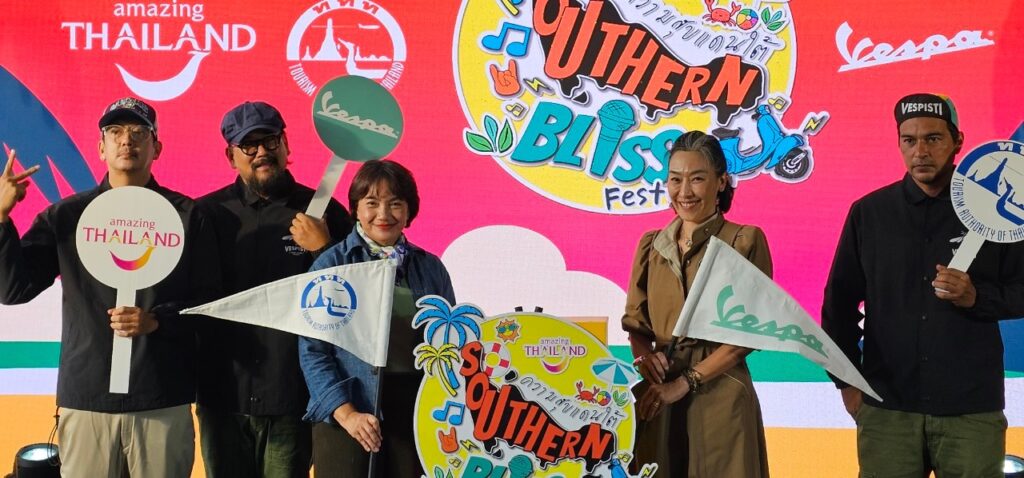 15 สิงหาคม 2567 การท่องเที่ยวแห่งประเทศไทย (ททท.) จับมือกับพันธมิตร Vespa Thailand ชวนสายเที่ยว สายดนตรี สายปาร์ตี้ ออกไปร่วมสนุกกับอีเวนต์ดี ๆ งาน “Southern Bliss Fest : ความสุขแดนใต้” จังหวัดชุมพรและนครศรีธรรมราช ตั้งเป้าสร้างสีสัน ความสนุกในพื้นที่ ช่วง Green Season พร้อมสร้างกระแสการเดินทางท่องเที่ยวตามเส้นทางสุดฟินกับพาหนะคู่ใจไปภาคใต้