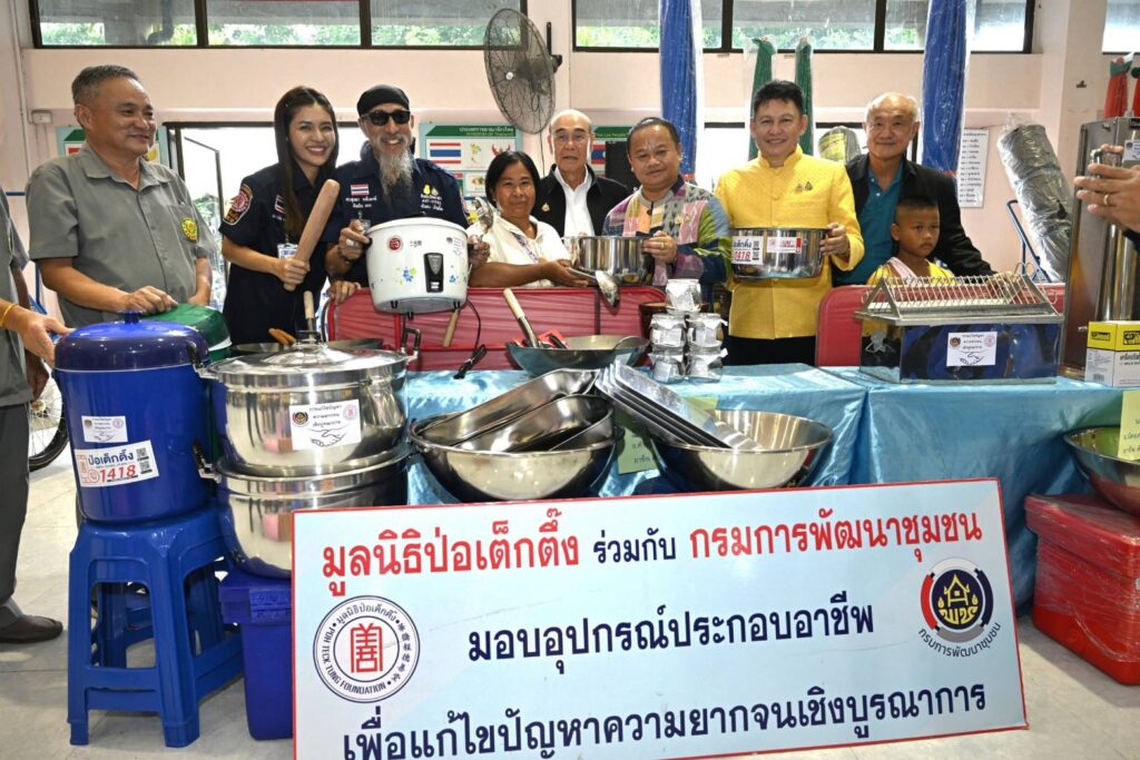 โครงการแก้ไขปัญหาความยากจนเชิงบูรณาการ มูลนิธิป่อเต็กตึ๊ง ได้สนับสนุนอุปกรณ์ประกอบอาชีพ ช่วยเหลือครัวเรือนยากจน ตามบันทึกข้อตกลงความร่วมมือแก้ไขปัญหาความยากจน ระหว่างกรมการพัฒนาชุมชนและมูลนิธิป่อเต็กตึ๊ง ซึ่งมูลนิธิฯ ได้จัดงบประมาณดำเนินการเพื่อจัดหาวัสดุอุปกรณ์การประกอบอาชีพมอบให้แก่ครัวเรือนยากจน ให้สามารถประกอบอาชีพเลี้ยงตนเองและครอบครัว โดยในกลุ่มเป้าหมายแรกดำเนินการในพื้นที่ภาคกลาง 17 จังหวัด รวม 98 ครัวเรือน ต่อมา ได้ดำเนินการในพื้นที่จังหวัดทางภาคเหนือ 17 จังหวัด รวม 230 ครัวเรือน ซึ่งได้ดำเนินการเป็นที่เรียบร้อยแล้ว และในขณะได้พิจารณาพื้นที่ภาคตะวันออกเฉียงเหนือ รวม 20 จังหวัด ประกอบด้วย จังหวัดบุรีรัมย์ สุรินทร์ กาฬสินธุ์ ชัยภูมิ นครราชสีมา อุดรธานี มุกดาหาร หนองบัวลำภู บึงกาฬ ยโสธร ศรีสะเกษ มหาสารคาม ขอนแก่น อุบลราชธานี ร้อยเอ็ด อำนาจเจริญ สกลนคร เลย หนองคาย และ นครพนม