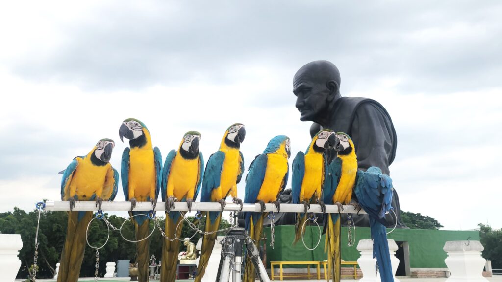เมื่อเวลา 16.00 น. วันที่ 18 สิงหาคม 2567 ที่ริมแม่น้ำเจ้าพระยา วัดเทียนถวาย ตำบลบ้านใหม่ อำเภอเมืองปทุมธานี จังหวัดปทุมธานี กลุ่มคนเลี้ยงนกบินอิสระ และสมาชิกกลุ่มผู้เลี้ยงนกแก้วมาคอร์ กว่า 50 คน ได้นำนกแก้วมาคอร์หลายสีสันมาปล่อยบินอิสระ ที่มีการฝึกฝนให้นกได้ออกบินอย่างอิสระและสามารถกลับมาหาผู้เลี้ยง หรือกลับมาตามคำสั่งของเจ้าของได้