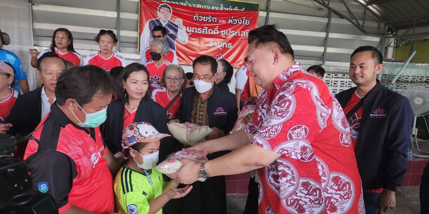 วันที่ 18 สิงหาคม 2567 นายยุทธศักดิ์ ชูประเสริฐ หรือ จ่ายุทธ อดีตที่ปรึกษา รัฐมนตรีช่วยเกษตรฯ ประธาน กต.ตร.สภ.คลองหลวง และทีมงานยุทธศักดิ์พัฒนา ลงพื้นที่มอบข้าวสารจำนวน 1,500 ครอบครัวๆ ละ 5 กิโลกรัม ที่ชุมชนไวท์เฮ้าส์ ตำบลคลองหนึ่ง อำเภอคลองหลวง จังหวัดปทุมธานี