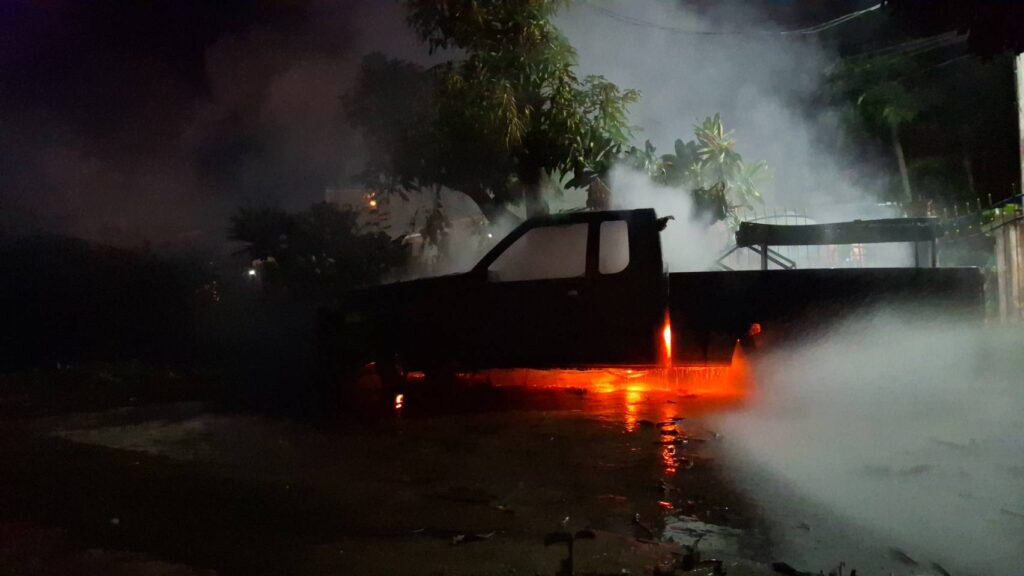 ผู้สื่อข่าวรายงานว่า หน่วยป้องกันและบรรเทาสาธารณะภัยและกู้ภัยเทศบาลตำบลทุ่งยั้งได้รับแจ้งจากประชาชนขอความช่วยเหลือให้ดับไฟไหม้รถกระบะ ภายในบ้านเลขที่ 151 หมู่ 1 ไผ่ล้อม ตำบลทุ่งยั้งอำเภอลับแล จังหวัดอุตรดิตถ์ ทางทีมกู้ภัยป้องกันและบรรเทาสาธารณภัยกู้ชีพกู้ภัยของเทศบาลตำบลทุ่งยั้งหลังจากได้รับแจ้งจากประชาชน จึงได้ทำการนำกำลังเข้าตรวจสอบบริเวณพื้นที่สถานที่ที่ได้รับแจ้งดังกล่าวทันที เมื่อถึงที่เกิดเหตุพบรถกระบะอยู่ในสภาพไฟกำลังลุกโถมเจ้าหน้าที่ป้องกันและกู้ชีพกู้ภัยเทศบาลตำบลทุ่งยั้งพร้อมด้วยอาสาสมัครกู้ภัยอุตรดิตถ์สงเคราะห์จุดทุ่งยั้ง จึงได้ต่อสายดับเพลิงจากรถดับเพลิงเพื่อเข้าระงับเหตุเพลิงไหม้ทันที จากเหตุการณ์ผู้เสียหายเจ้าของรถให้ข้อมูลว่าตนได้ไปขายของ ในตลาดนัดแห่ง หนึ่งในเขตพื้นที่ อำเภอเมืองจังหวัดอุตรดิตถ์ซึ่งตนเองทำอาชีพปิ้งย่างปลาหมึกและขายบาร์บีคิวตามตลาดนัดหลังจากเก็บของ ขึ้นรถแล้ว จึงนำรถมาจอดบริเวณหน้าบ้านของเพื่อนบ้านเพราะสถานที่จอดรถบ้านของตนเป็นสถานที่คับแคบจนถึงเวลาประมาณตี 2 เพื่อนบ้านได้ออกมาเห็นแสงไฟเกิดไฟลุกจากด้านหลัง ซึ่งตนเองได้นำเตาปิ้งย่างและสัมภาระของที่ขาย นำไปไว้ที่ท้ายกระบะและไม่ได้นำลงจากรถเพราะจะต้องนำสินค้าไปขายในวันถัดไป เมื่อเกิดเหตุเพลิงไหม้ตนจึงนำน้ำมาดับไฟจากสายยางแต่ไฟไม่สามารถดับได้ไฟยังลุกต่อเนื่อง จึงได้ขอรถดับเพลิงของเทศบาลเข้ามาระงับเหตุเพื่อไม่ให้ไปลุกลามไหม้ไปทางบ้านของผู้อื่นที่ตนนำมาจอดเอาไว้ ผู้เสียหายเล่าต่อไปว่าตนได้นำรถมาจอดไว้และด้านหลังกระบะมีของขายต้นและภรรยาได้ทำการดับไฟในเตาทุกครั้งหลังจากกลับจากตลาดนัดและในครั้งนี้ตนเองก็มั่นใจว่าตนได้ดับไฟในเตาแล้วเรียบร้อย