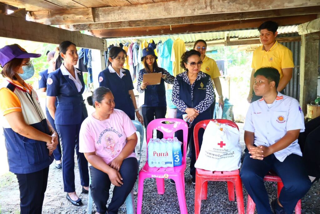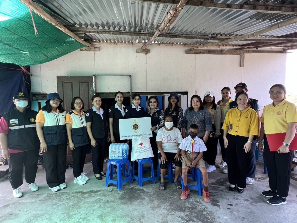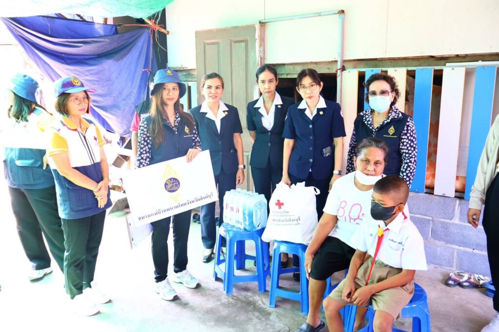 ทั้งนี้ สำนักงานเหล่ากาชาดจังหวัดสิงห์บุรี ได้สนับสนุนเครื่องอุปโภคบริโภค รายละ 1 ชุด