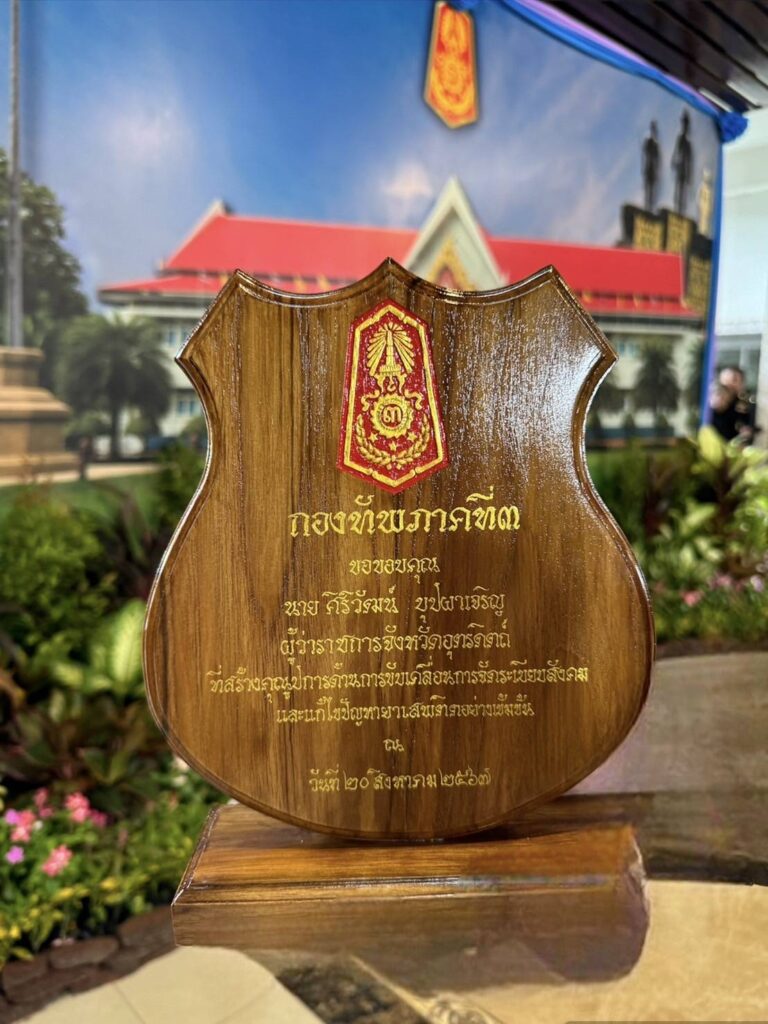 วันที่ 20 สิงหาคม 2567 เวลา 10.00 น. ณ ห้องบันเทิงทัพ 1 สโมสรบันเทิงทัพ ค่ายสมเด็จพระนเรศวรมหาราช อำเภอเมืองฯ จังหวัดพิษณุโลก นายศิริวัฒน์ บุปผาเจริญ ผู้ว่าราชการจังหวัดอุตรดิตถ์ ร่วมเป็นเกียรติในพิธีบำเพ็ญกุศล และรับมอบโล่ประกาศเกียรติคุณจากแม่ทัพภาคที่ 3 “ที่สร้างคุณูปการด้านการขับเคลื่อนการจัดระเบียบสังคมและแก้ไขปัญหายาเสพติดอย่างเข้มข้น” เนื่องในวันสถาปนากองทัพภาคที่ 3 ครบรอบปีที่ 122