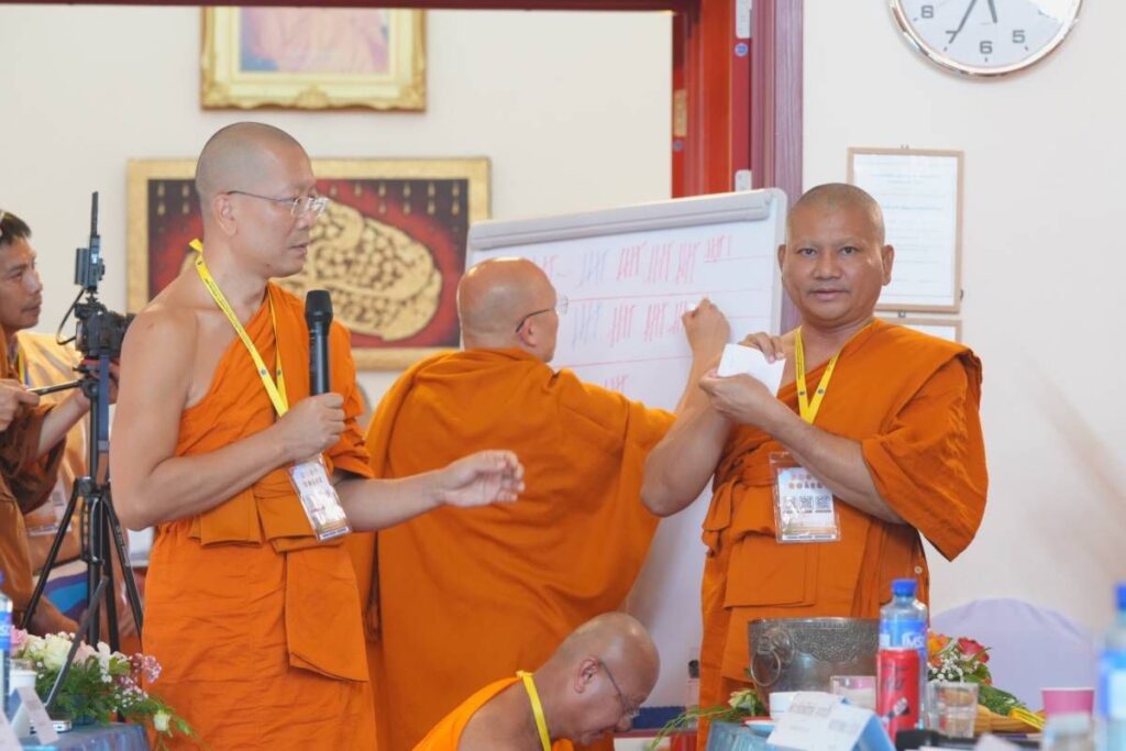 บรรยากาศในการประชุมฯวันที่ 17 สิงหาคม ได้รับเมตตาจาก พระเดชพระคุณพระธรรมวชิรโมลี รองประธานสำนักงานกำกับดูแลพระธรรมทูตไปต่างประเทศ รูปที่ 2 เจ้าอาวาสวัดยานนาวา เป็นประธานอัญเชิญสาส์นจากเจ้าประคุณสมเด็จพระอริยวงศาคตญาณ สมเด็จพระสังฆราชสกลมหาสังฆปริณายก เปิดการประชุมสหภาพพระธรรมทูตไทยในทวีปยุโรป สมัยสามัญ ครั้งที่ 17 ประจำปี 2567 ณ วัดไทยนอร์เวย์ ราชอาณาจักรนอร์เวย์ ต่อมาพระราชวัชรสารบัณฑิต รศ., ดร. รองอธิการบดีฝ่ายวางแผนและพัฒนา ปฏิบัติหน้าที่แทนอธิการบดีมหาวิทยาลัยมหาจุฬาลงกรณราชวิทยาลัยบรรยายพิเศษเรื่อง “แนวทางการพัฒนาองค์กรพระธรรมทูตในต่างประเทศ” ภาคบ่ายพระเดชพระคุณพระราชวชิรศาสนวิเทศ ประธานสหภาพพระธรรมทูตไทยในทวีปยุโรป เจ้าอาวาสวัดไทยนอร์เวย์ ได้นำคณะกรรมการสหภาพฯเลือกตั้งคณะกรรมการบริหารชุดใหม่ในปี 2567-2569