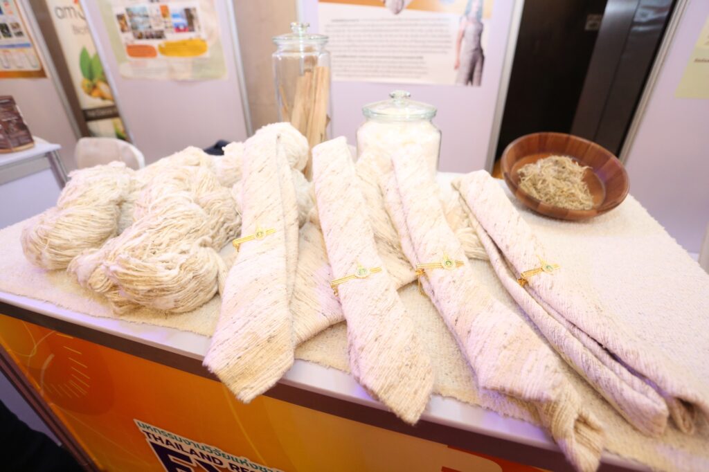 ภายในงานแถลงข่าวการจัดงานมหกรรมงานวิจัยแห่งชาติ 2567 นำผลงานส่วนหนึ่งมาจัดแสดงภายในงานคับคั่ง อาทิ ผลงาน : อากาศยานไร้คนขับพลังงานแสงอาทิตย์สมรรถนะสูงเพดานบินต่ำ โดย กรมวิทยาศาสตร์และเทคโนโลยีกลาโหม ผลงาน : นิวก็เคลียร์ ไม่นิวก็เคลียร์ จาก สถาบันเทคโนโลยีนิวเคลียร์แห่งชาติ (องค์การมหาชน) ผลงาน มวยไทยเมืองลุง จากมหาวิทยาลัยทักษิณ ผลงานการวิจัยและพัฒนาแผ่นแปะสารสกัดแคนนาบิไดออลจากตำรับยาการุณย์โอสถ ชนิดออกฤทธิ์ทางกระแสเลือด เพื่อใช้ในการบรรเทาอาการของโรคสะเก็ดเงินชนิดผื่นหนา (plaque psoriasis) ระดับความรุนแรงน้อยถึงปานกลาง โดย กรมการแพทย์แผนไทยและการแพทย์ทางเลือก ผลงานการพัฒนาระบบการปลูกเลี้ยงไม้ดอกไม้ประดับในระบบเกษตรปลอดภัยเพื่อการบริโภค โดย สถาบันวิจัยวิทยาศาสตร์และเทคโนโลยีแห่งประเทศไทย (วว.) ผลงาน ชุดตรวจสอบสัตว์ต้องห้ามแบบรวดเร็วในผลิตภัณฑ์อาหารฮาลาล โดยจุฬาลงกรณ์มหาวิทยาลัย ผลงาน การยกระดับผลิตภัณฑ์โอทอปจากมังคุดของกลุ่มวิสาหกิจชุมชนในภาคตะวันออก โดย มหาวิทยาลัยเทคโนโลยีราชมงคลตะวันออก ผลงาน การพัฒนาเส้นด้ายปั่นมือจากใยอ้อยผสมใยฟิลาเจนสู่การออกแบบเสื้อผ้าแฟชั่น โดยมหาวิทยาลัยเทคโนโลยีราชมงคลกรุงเทพ ผลงาน การประยุกต์เทคโนโลยีแสงซินโครตรอนในการรักษาคุณภาพ ทุเรียนแช่เยือกแข็งเพื่อการส่งออก โดย สถาบันวิจัยแสงซินโครตรอน ผลงานนวัตพันธุ์ข้าวสี จุดเปลี่ยนในอาหารโภชนาการ โดย มหาวิทยาลัยเกษตรศาสตร์ ผลงาน I-SecTechnology เทคโนโลยีการสกัดโปรตีน จากจิ้งหรีดแบบอัตโนมัติในระดับอุตสาหกรรมเพื่ออนาคตที่ยั่งยืน โดย มหาวิทยาลัยนเรศวร ผลงาน CMU-Doneพอดี อุปกรณ์ดันปลายจมูกเฉพาะบุคคลสำหรับผู้ป่วยปากแหว่งเพดานโหว่ โดยมหาวิทยาลัยเชียงใหม่ ผลงาน : บรรจุภัณฑ์ย่อยสลายทางชีวภาพจากแป้งเทอร์โมพลาสติกที่ขึ้นรูปด้วยเทคนิคเทอร์โมฟอร์มมิ่ง โดย มหาวิทยาลัยเทคโนโลยีพระจอมเกล้าธนบุรี ผลงาน : นวัตกรรมการใช้ต้นไม้ลดฝุ่น PM 2.5 ด้วยรูปแบบสวนภูมิทัศน์ในสังคมเมือง โดย มหาวิทยาลัยศรีนครินทรวิโรฒ ผลงาน : เทคโนโลยีตรวจวัดยาปราบศัตรูพืชแบบแม่นยำและกระบวนการเอนไซม์สังเคราะห์สารมีมูลค่าลูซิเฟอรินจากสารฟีนอลลิค โดยสถาบันวิทยสิริเมธี ผลงาน : การวิจัยและพัฒนาแผ่นแปะสารสกัดแคนนาบิไดออลจากตำรับยาการุณย์โอสถ ชนิดออกฤทธิ์ทางกระแสเลือด เพื่อใช้ในการบรรเทาอาการของโรคสะเก็ดเงินชนิดผื่นหนา (plaque psoriasis) ระดับความรุนแรงน้อยถึงปานกลาง โดย ผลงานกรมการแพทย์แผนไทยและการแพทย์ทางเลือก ผลงาน : มอร์ตาร์สำหรับก่อสำเร็จรูปโดยใช้มวลรวม