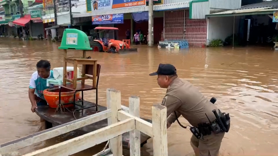สำหรับในตัวตลาดวังโป่งจากการสอบถามพ่อค้าแม่ค้าไม่เคยปรากฏว่ามีน้ำท่วมข้ามฝั่งมาเลย ครั้งนี้เป็นครั้งแรก จึงเตรียมตัวไม่ทัน แต่อย่างไรก็ตามเทศบาลตำบลวังโป่งได้ส่งเจ้าหน้าที่เข้ามาช่วยเหลือยกข้าวของขึ้นสู่ที่สูงและให้เจ้าหน้าที่คอยเฝ้าระวังอยู่ในพื้นที่ตลอดเวลา ขณะนี้ทางเทศบาลได้จัดเตรียมข้าวกล่องและน้ำเพื่อนำไปช่วยเหลือชาวบ้านที่ดีรับความเดือดร้อนอย่างเร่งด่วน คาดว่าหากไม่มีฝนตกลงมาอีก วันพรุ่งนี้สถานการณ์ก็คงจะเข้าสู่ภาวะปกติ